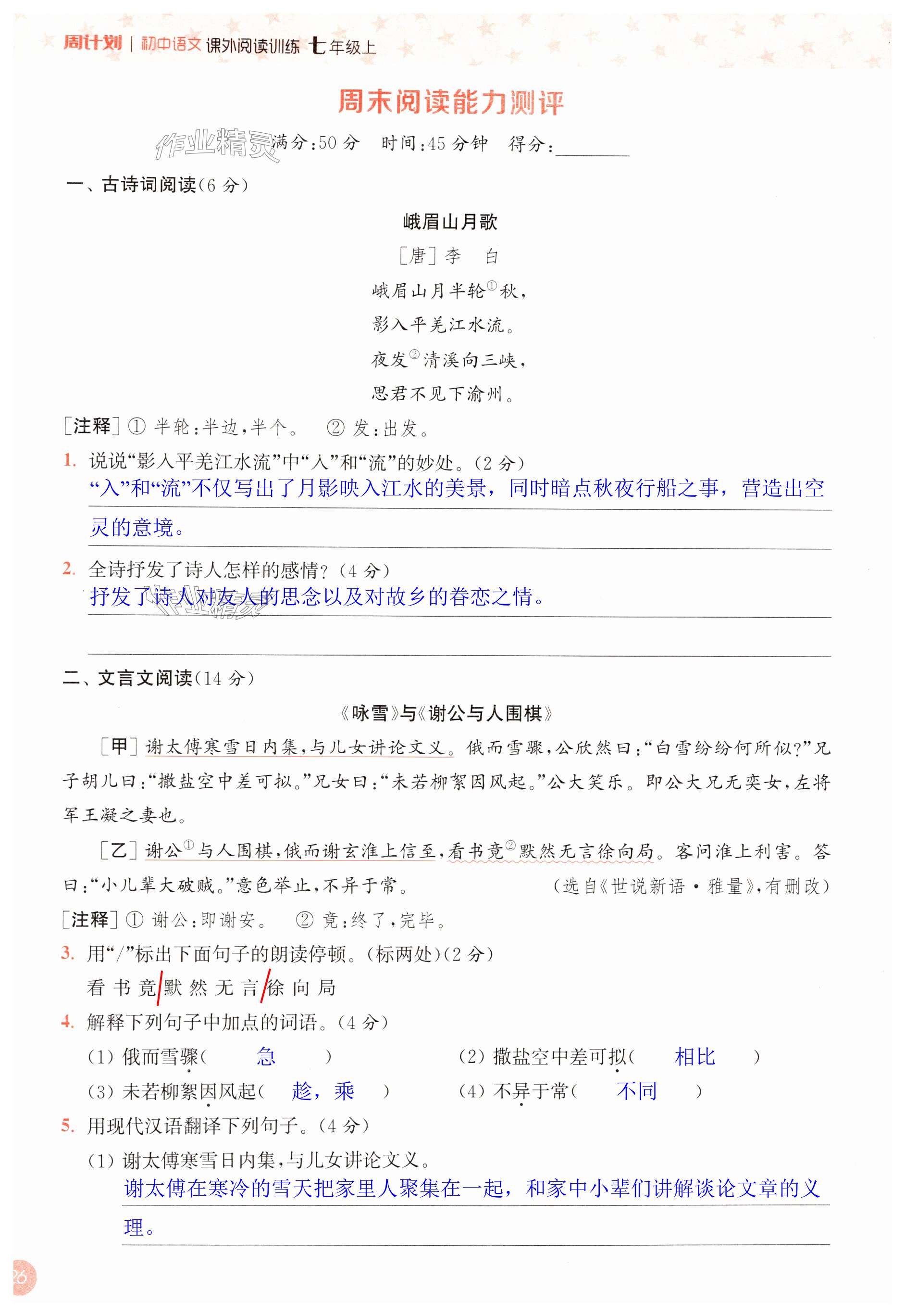 2024年通城学典周计划课外阅读训练七年级语文上册人教版