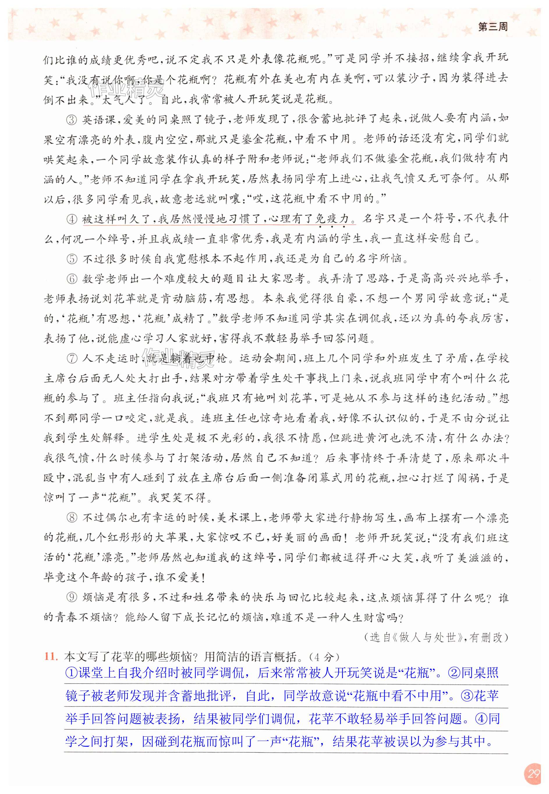 注:目前有些书本章节名称可能整理的还不是很完善,但都是按照顺序排列的,请同学们按照顺序仔细查找。练习册 2024年通城学典周计划课外阅读训练七年级语文上册人教版 答案主要是用来给同学们做完题方便对答案用的,请勿直接抄袭。