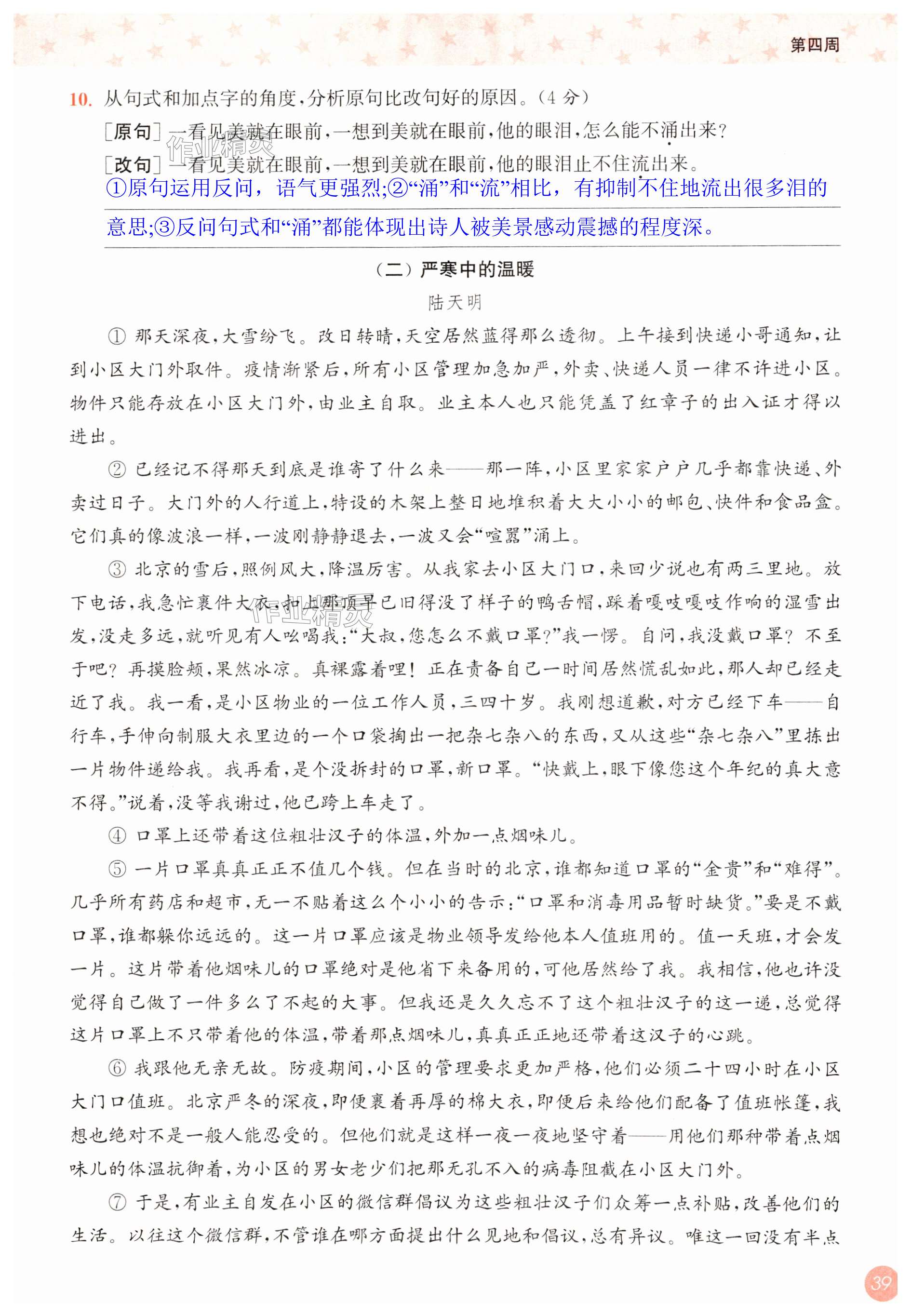 注:目前有些书本章节名称可能整理的还不是很完善,但都是按照顺序排列的,请同学们按照顺序仔细查找。练习册 2024年通城学典周计划课外阅读训练七年级语文上册人教版 答案主要是用来给同学们做完题方便对答案用的,请勿直接抄袭。