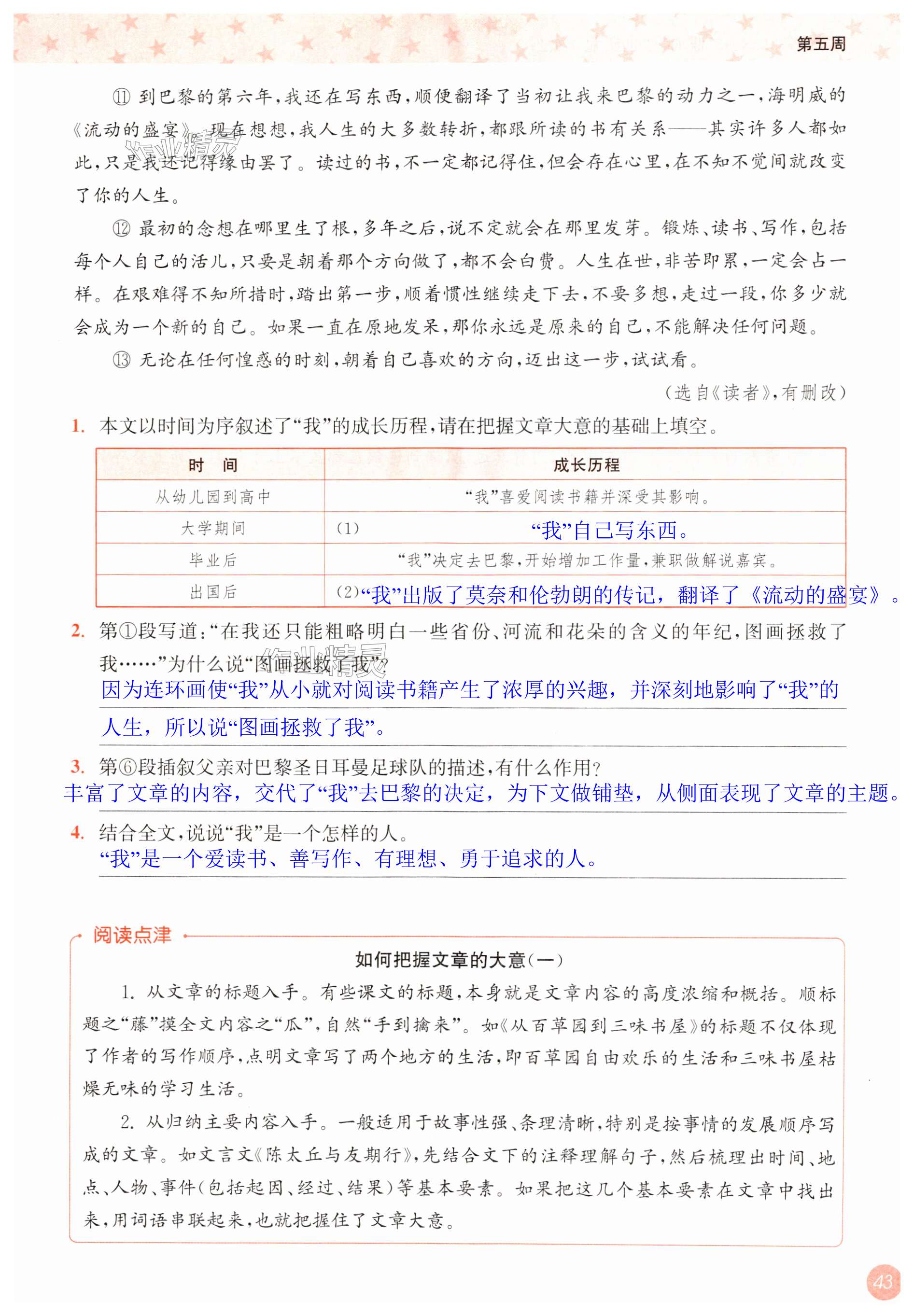 注:目前有些书本章节名称可能整理的还不是很完善,但都是按照顺序排列的,请同学们按照顺序仔细查找。练习册 2024年通城学典周计划课外阅读训练七年级语文上册人教版 答案主要是用来给同学们做完题方便对答案用的,请勿直接抄袭。