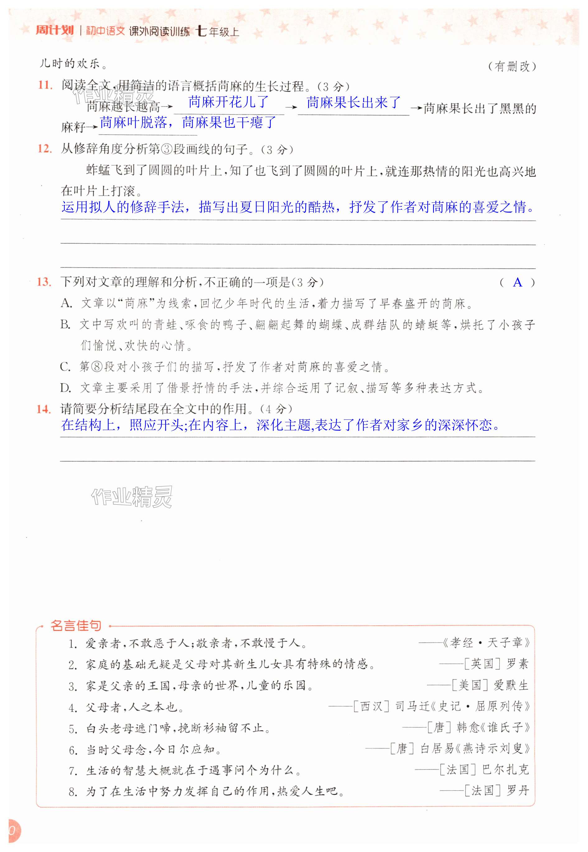 注:目前有些书本章节名称可能整理的还不是很完善,但都是按照顺序排列的,请同学们按照顺序仔细查找。练习册 2024年通城学典周计划课外阅读训练七年级语文上册人教版 答案主要是用来给同学们做完题方便对答案用的,请勿直接抄袭。