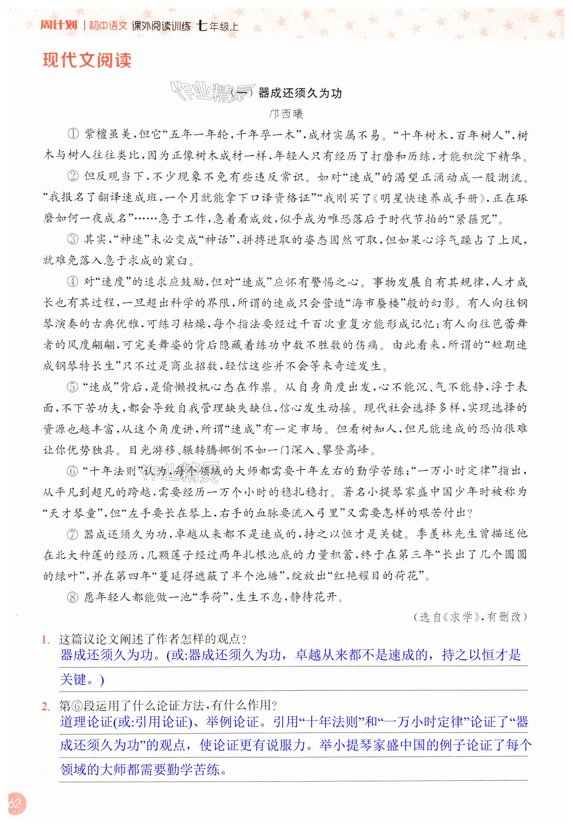 注:目前有些书本章节名称可能整理的还不是很完善,但都是按照顺序排列的,请同学们按照顺序仔细查找。练习册 2024年通城学典周计划课外阅读训练七年级语文上册人教版 答案主要是用来给同学们做完题方便对答案用的,请勿直接抄袭。