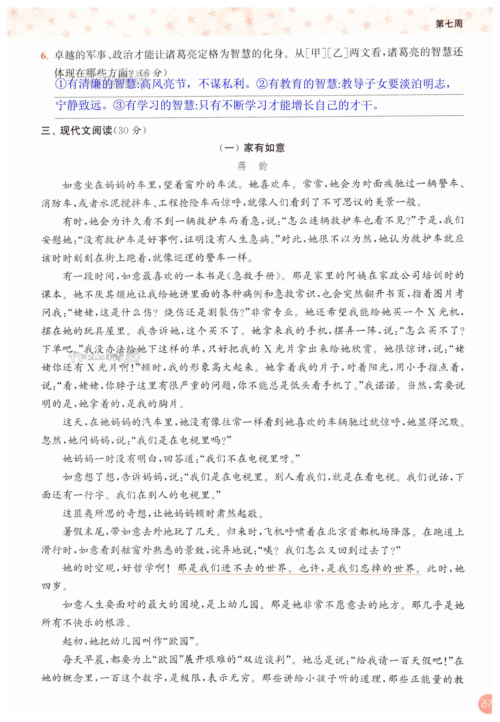 注:目前有些书本章节名称可能整理的还不是很完善,但都是按照顺序排列的,请同学们按照顺序仔细查找。练习册 2024年通城学典周计划课外阅读训练七年级语文上册人教版 答案主要是用来给同学们做完题方便对答案用的,请勿直接抄袭。