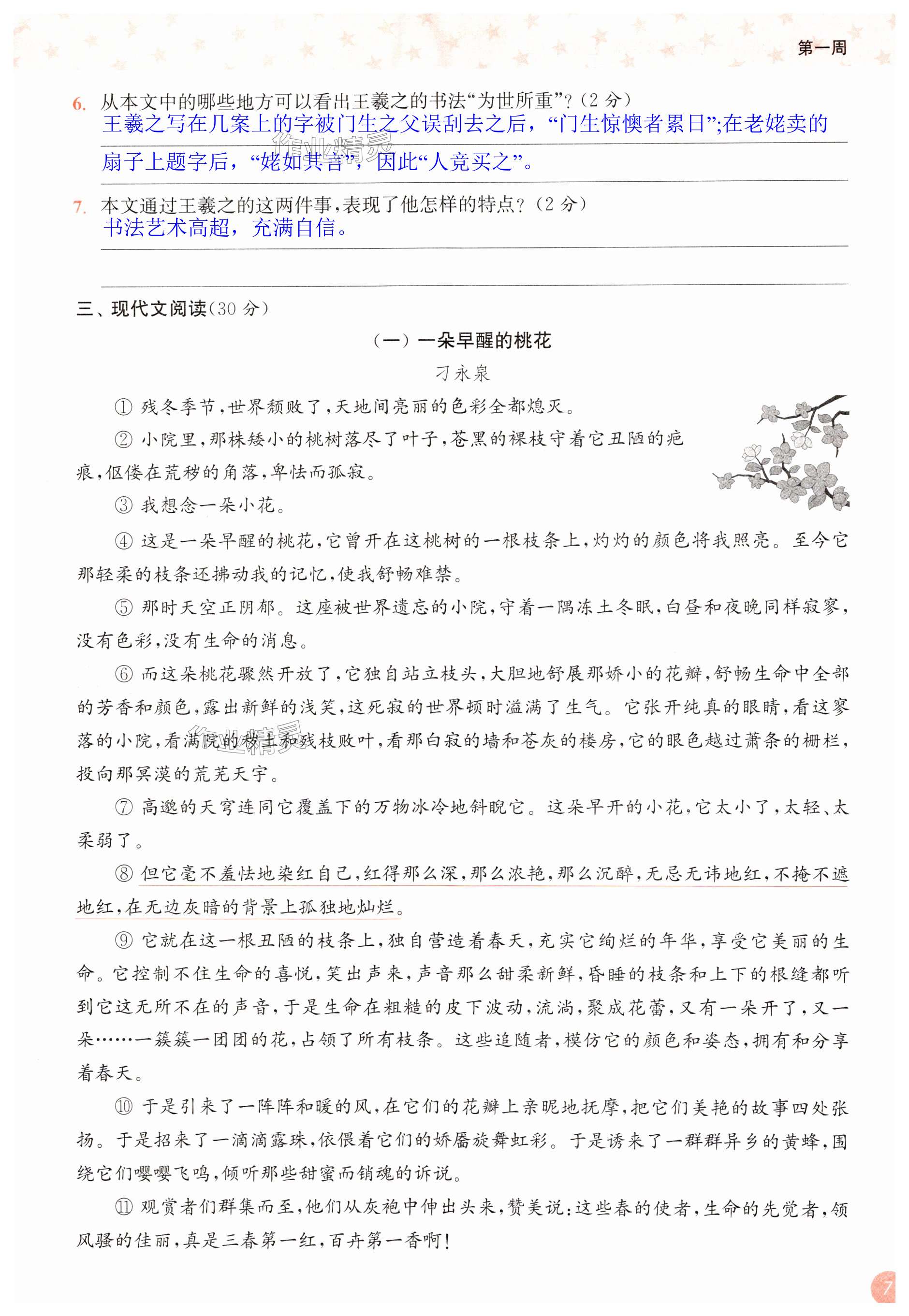 注:目前有些书本章节名称可能整理的还不是很完善,但都是按照顺序排列的,请同学们按照顺序仔细查找。练习册 2024年通城学典周计划课外阅读训练七年级语文上册人教版 答案主要是用来给同学们做完题方便对答案用的,请勿直接抄袭。