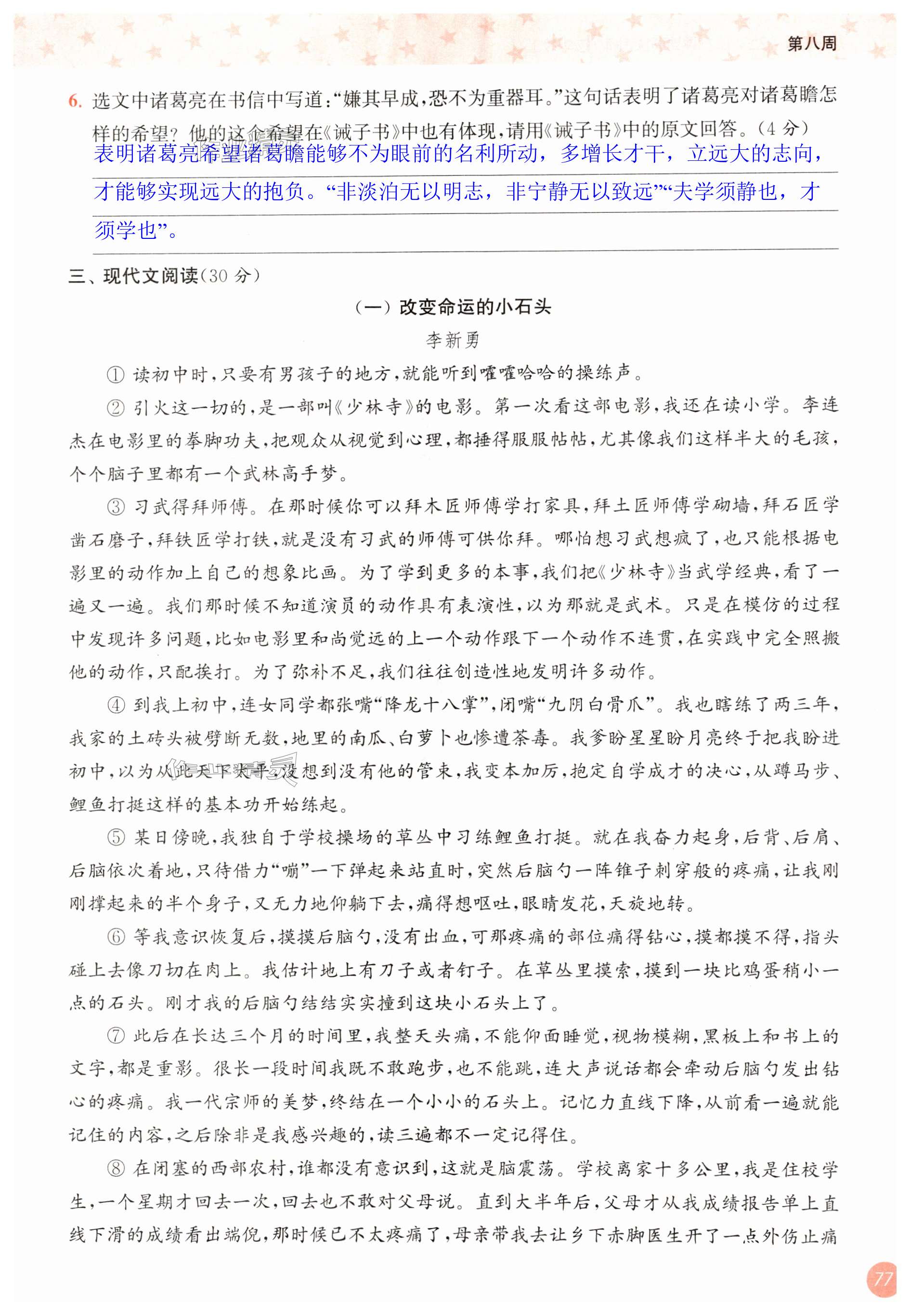 注:目前有些书本章节名称可能整理的还不是很完善,但都是按照顺序排列的,请同学们按照顺序仔细查找。练习册 2024年通城学典周计划课外阅读训练七年级语文上册人教版 答案主要是用来给同学们做完题方便对答案用的,请勿直接抄袭。