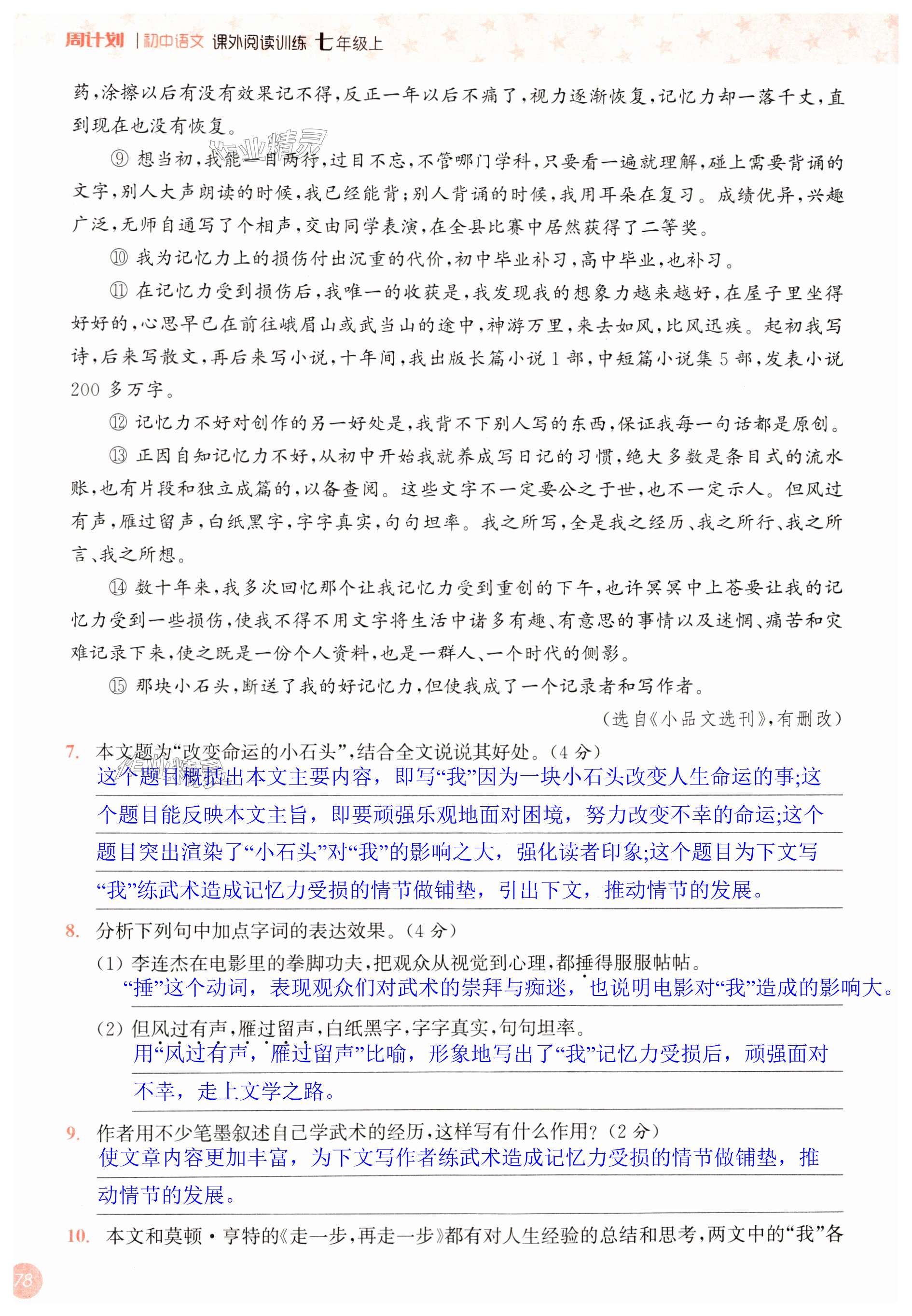 注:目前有些书本章节名称可能整理的还不是很完善,但都是按照顺序排列的,请同学们按照顺序仔细查找。练习册 2024年通城学典周计划课外阅读训练七年级语文上册人教版 答案主要是用来给同学们做完题方便对答案用的,请勿直接抄袭。
