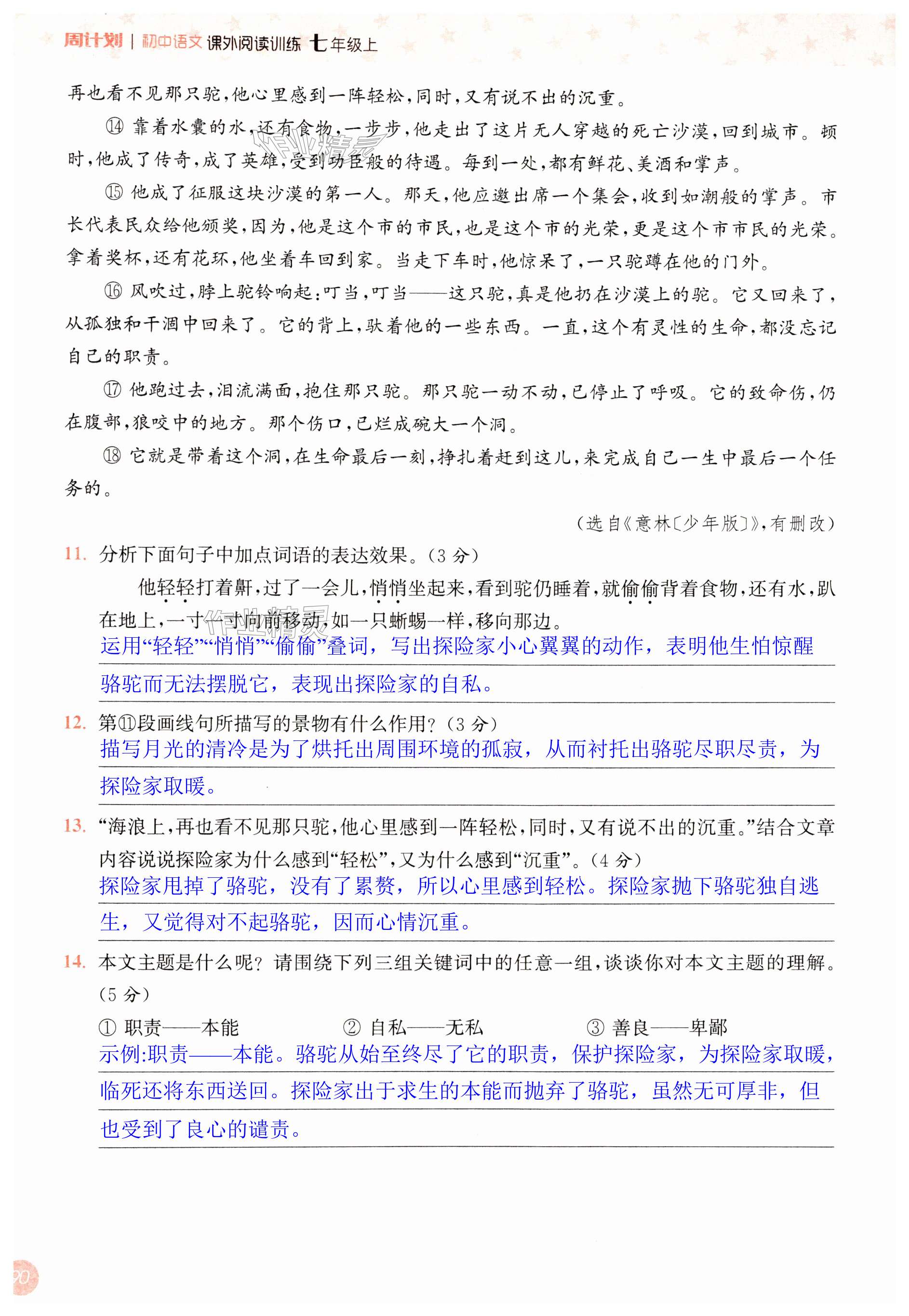 注:目前有些书本章节名称可能整理的还不是很完善,但都是按照顺序排列的,请同学们按照顺序仔细查找。练习册 2024年通城学典周计划课外阅读训练七年级语文上册人教版 答案主要是用来给同学们做完题方便对答案用的,请勿直接抄袭。