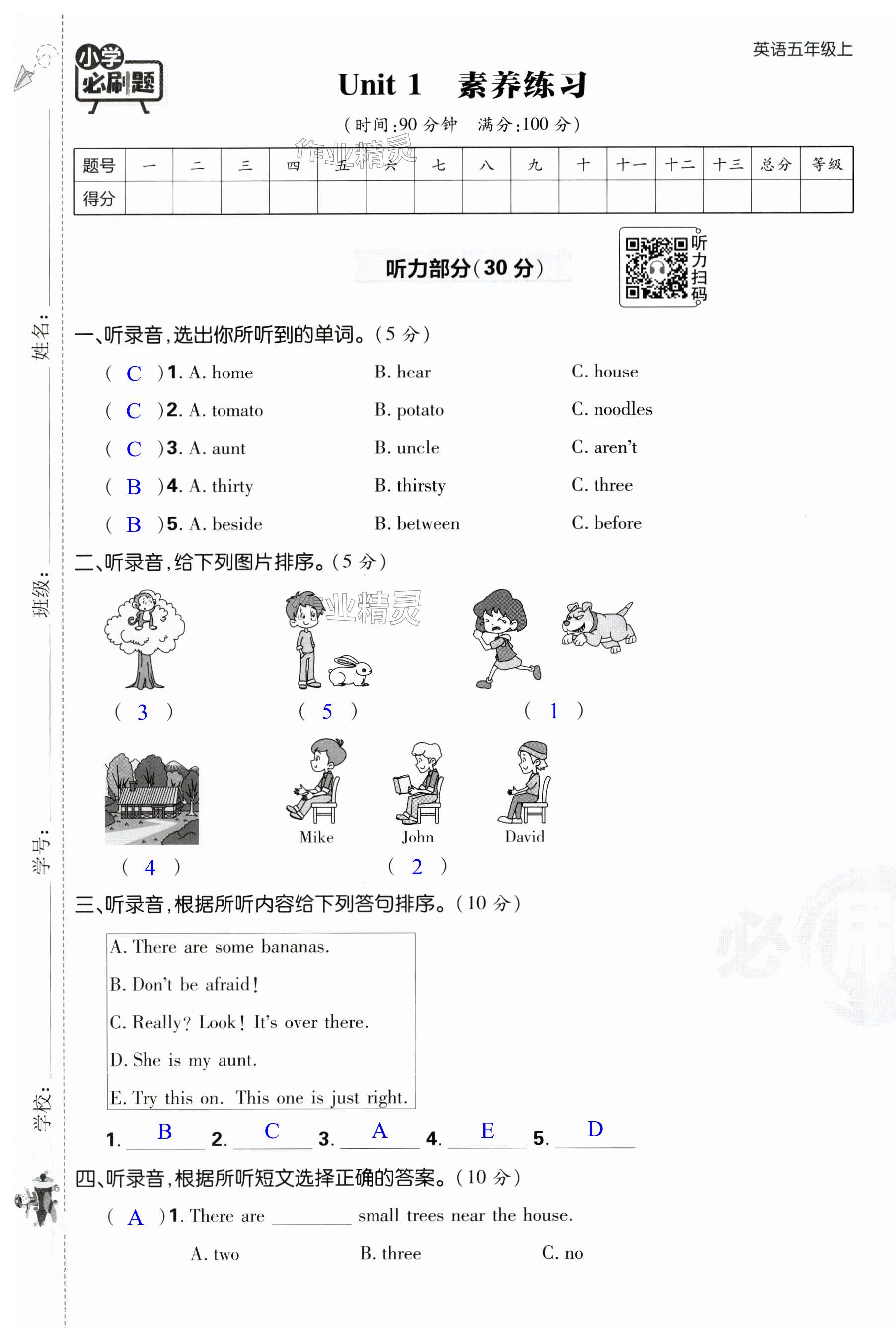 注:目前有些书本章节名称可能整理的还不是很完善,但都是按照顺序排列的,请同学们按照顺序仔细查找。练习册 2024年小学必刷题五年级英语上册译林版 答案主要是用来给同学们做完题方便对答案用的,请勿直接抄袭。