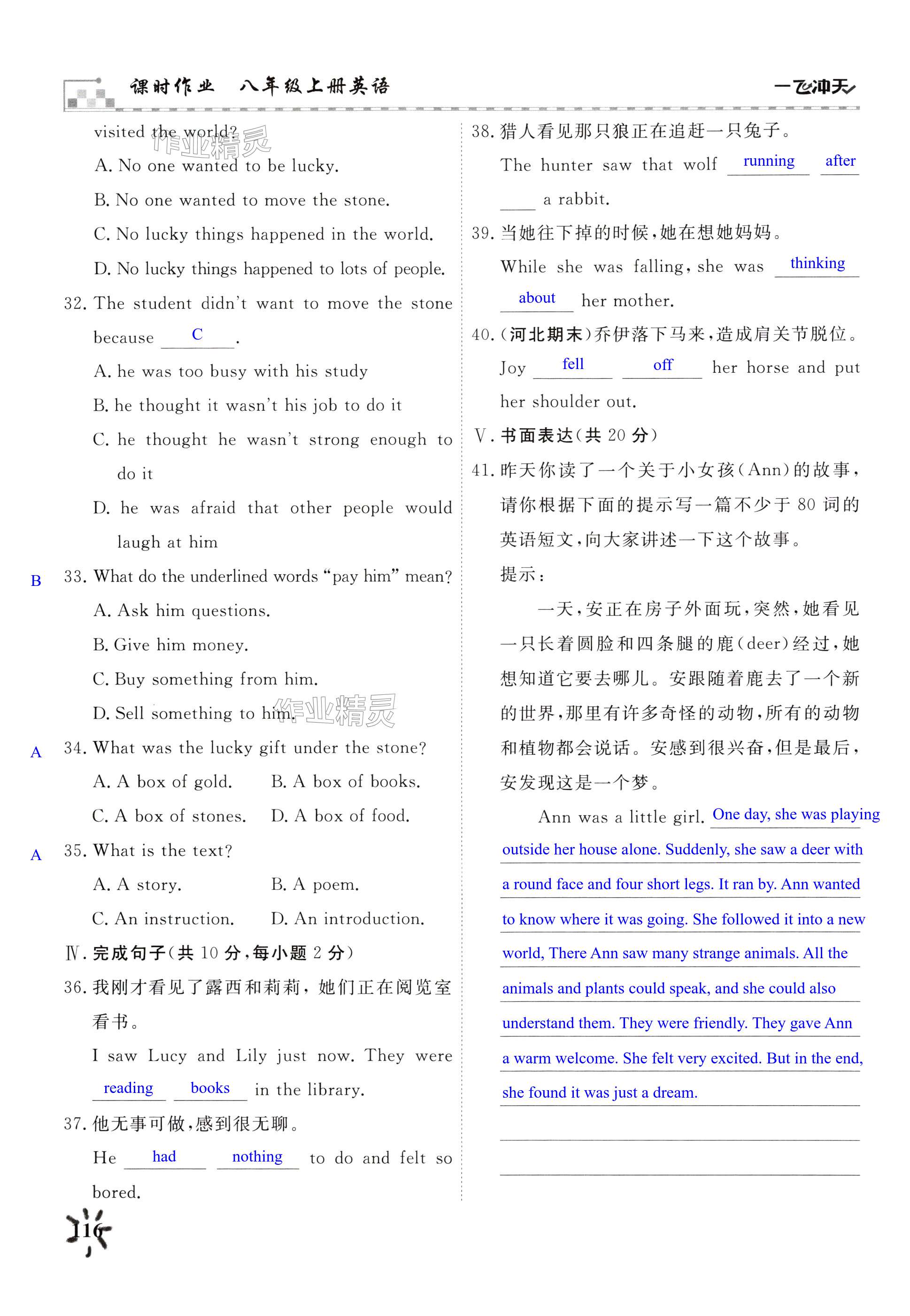 注:目前有些书本章节名称可能整理的还不是很完善,但都是按照顺序排列的,请同学们按照顺序仔细查找。练习册 2024年一飞冲天课时作业八年级英语上册外研版 答案主要是用来给同学们做完题方便对答案用的,请勿直接抄袭。