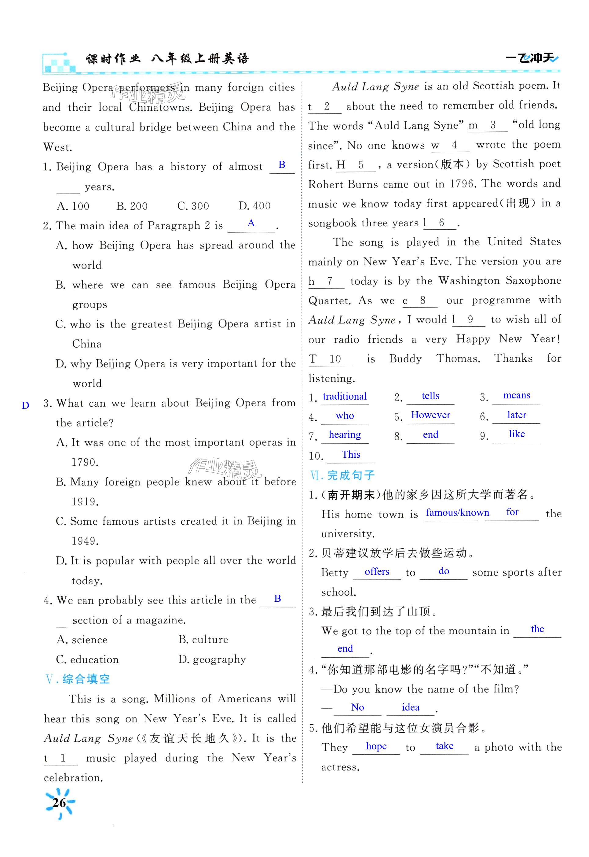 注:目前有些书本章节名称可能整理的还不是很完善,但都是按照顺序排列的,请同学们按照顺序仔细查找。练习册 2024年一飞冲天课时作业八年级英语上册外研版 答案主要是用来给同学们做完题方便对答案用的,请勿直接抄袭。