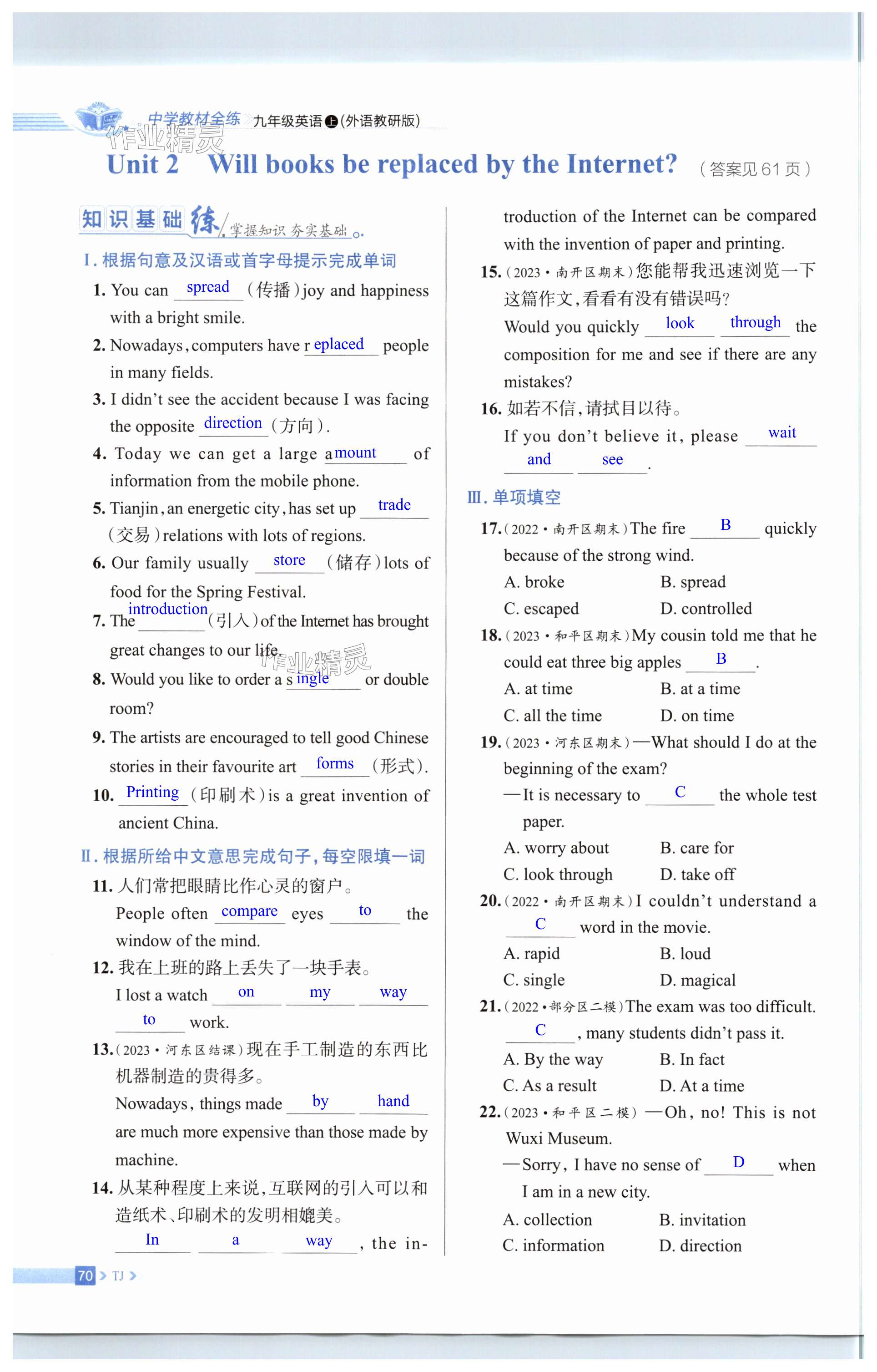 注:目前有些书本章节名称可能整理的还不是很完善,但都是按照顺序排列的,请同学们按照顺序仔细查找。练习册 2024年教材全练九年级英语上册外研版天津专用 答案主要是用来给同学们做完题方便对答案用的,请勿直接抄袭。