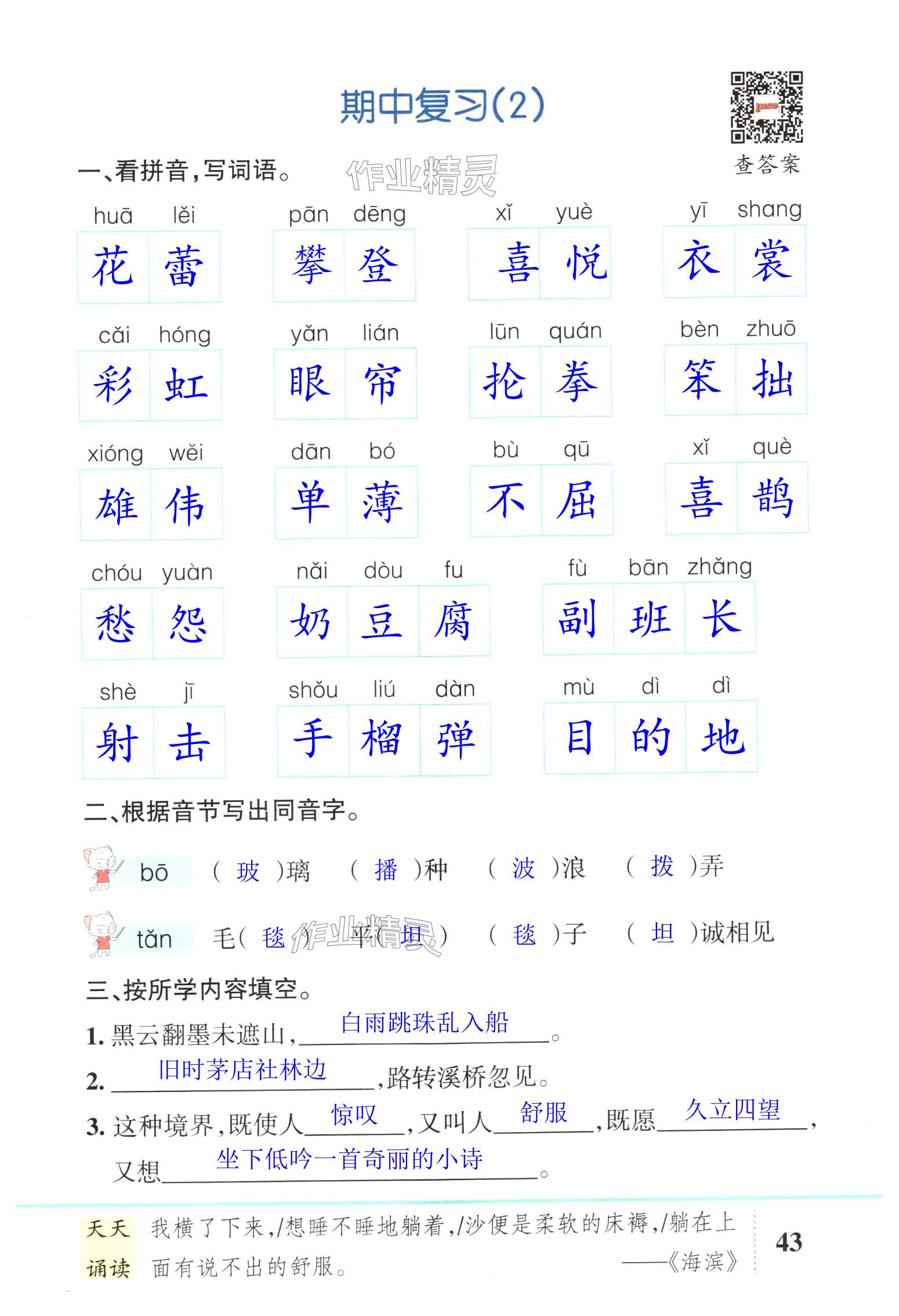 注:目前有些书本章节名称可能整理的还不是很完善,但都是按照顺序排列的,请同学们按照顺序仔细查找。练习册 2024年小学学霸天天默写六年级语文上册人教版广东专版 答案主要是用来给同学们做完题方便对答案用的,请勿直接抄袭。