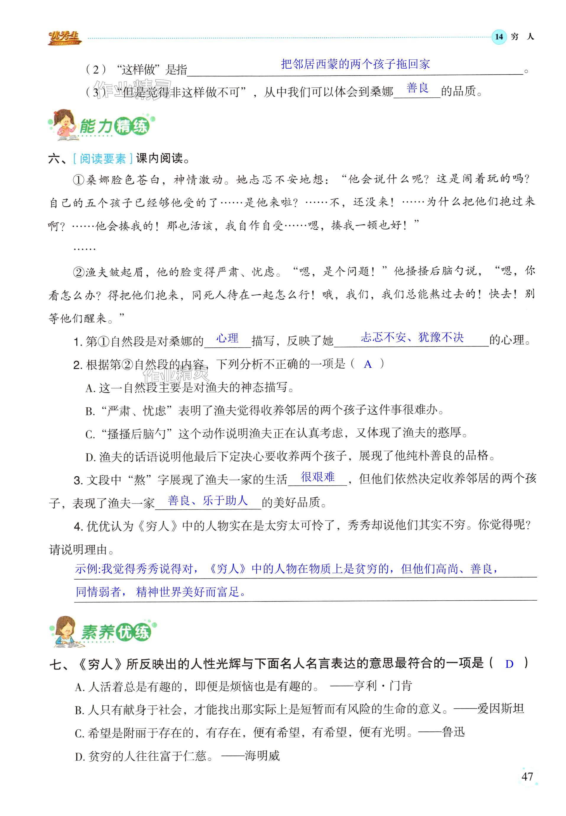 注:目前有些书本章节名称可能整理的还不是很完善,但都是按照顺序排列的,请同学们按照顺序仔细查找。练习册 2024年优秀生作业本六年级语文上册人教版 答案主要是用来给同学们做完题方便对答案用的,请勿直接抄袭。
