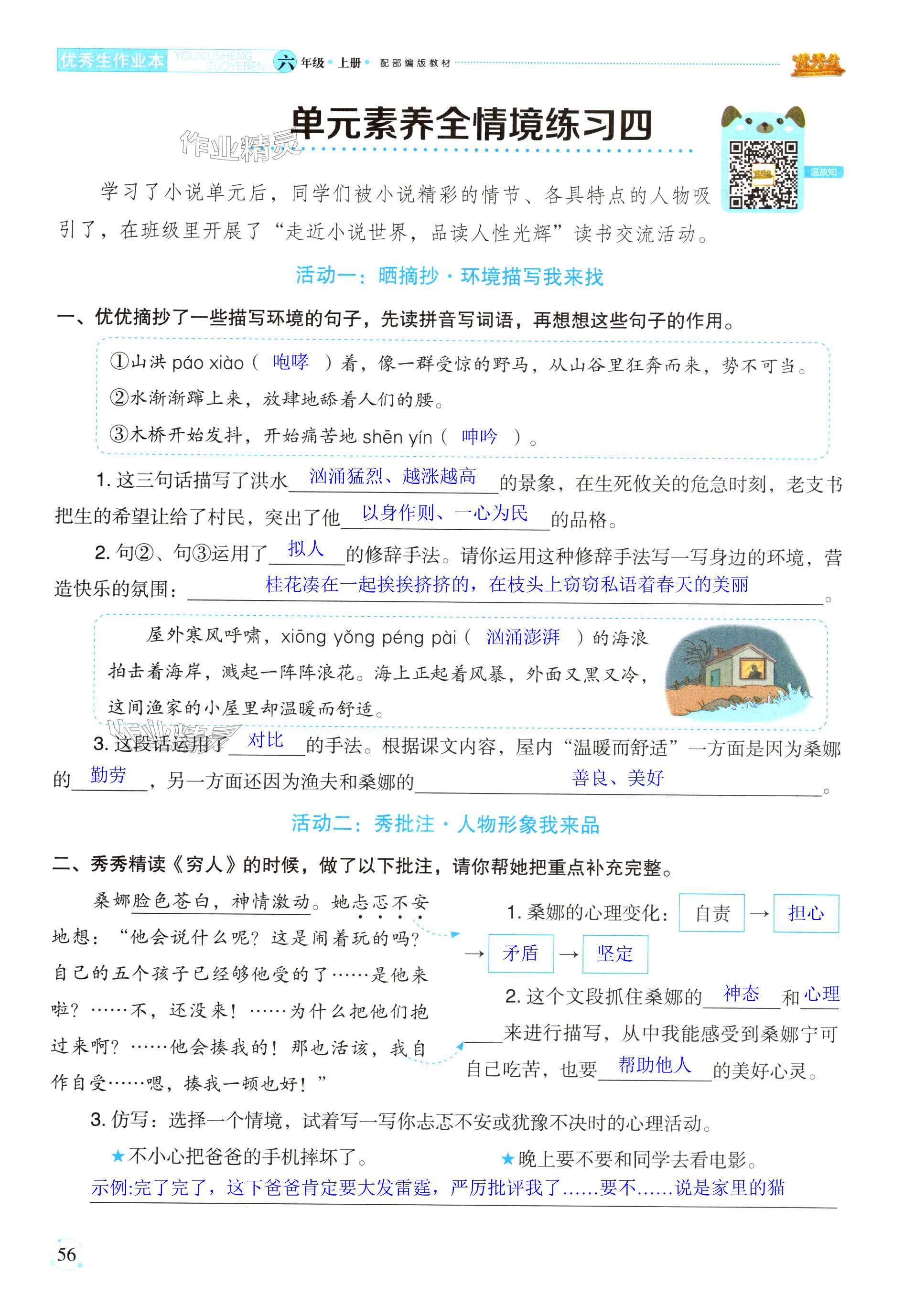 注:目前有些书本章节名称可能整理的还不是很完善,但都是按照顺序排列的,请同学们按照顺序仔细查找。练习册 2024年优秀生作业本六年级语文上册人教版 答案主要是用来给同学们做完题方便对答案用的,请勿直接抄袭。
