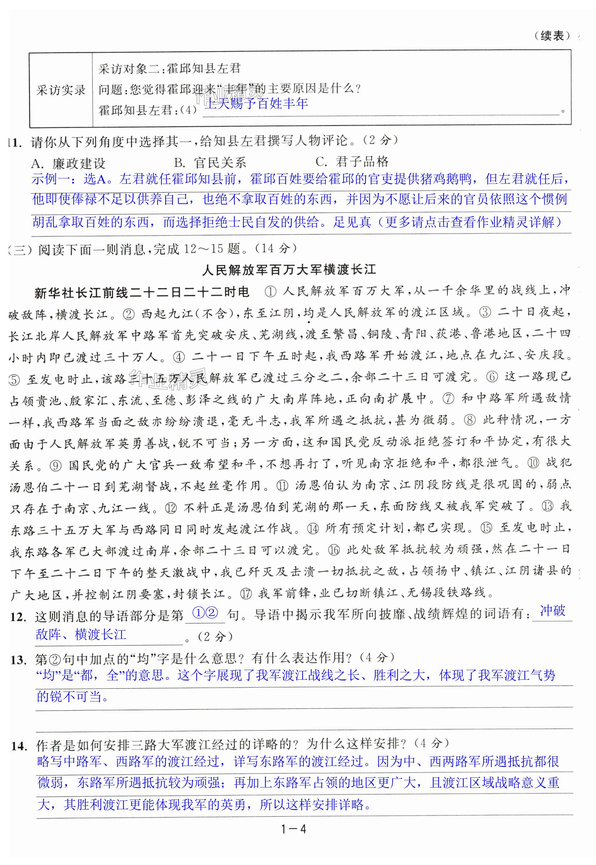 注:目前有些书本章节名称可能整理的还不是很完善,但都是按照顺序排列的,请同学们按照顺序仔细查找。练习册 2024年亮点给力大试卷八年级语文上册人教版 答案主要是用来给同学们做完题方便对答案用的,请勿直接抄袭。