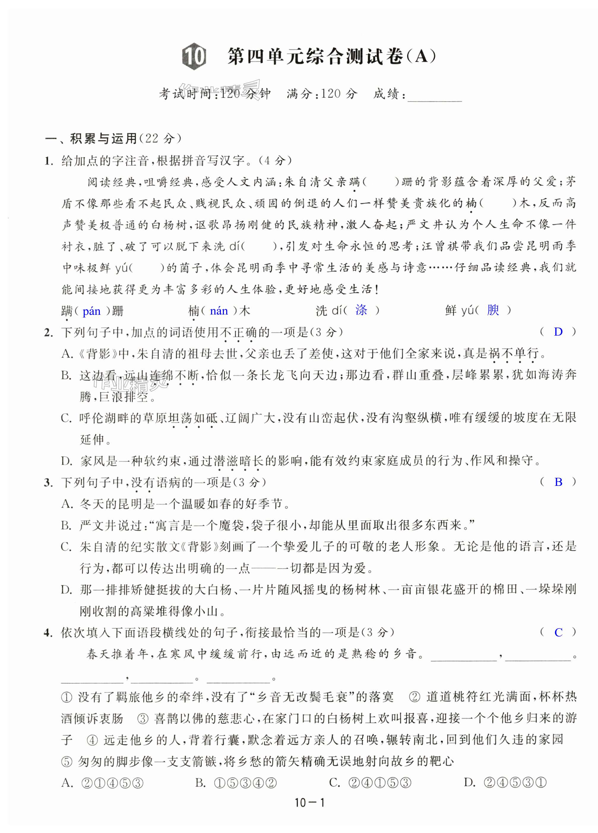 注:目前有些书本章节名称可能整理的还不是很完善,但都是按照顺序排列的,请同学们按照顺序仔细查找。练习册 2024年亮点给力大试卷八年级语文上册人教版 答案主要是用来给同学们做完题方便对答案用的,请勿直接抄袭。