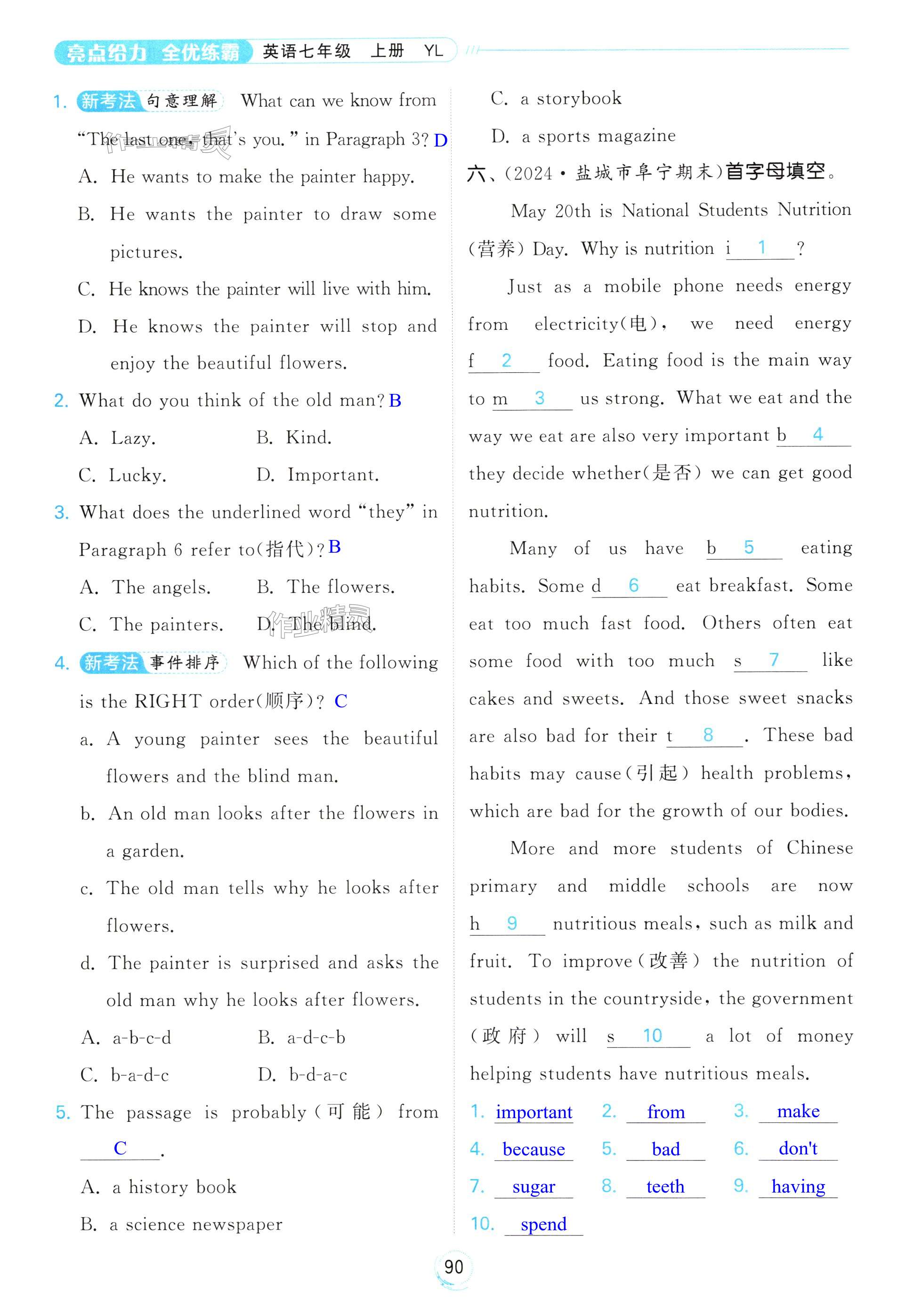 注:目前有些书本章节名称可能整理的还不是很完善,但都是按照顺序排列的,请同学们按照顺序仔细查找。练习册 2024年亮点给力全优练霸七年级英语上册译林版 答案主要是用来给同学们做完题方便对答案用的,请勿直接抄袭。