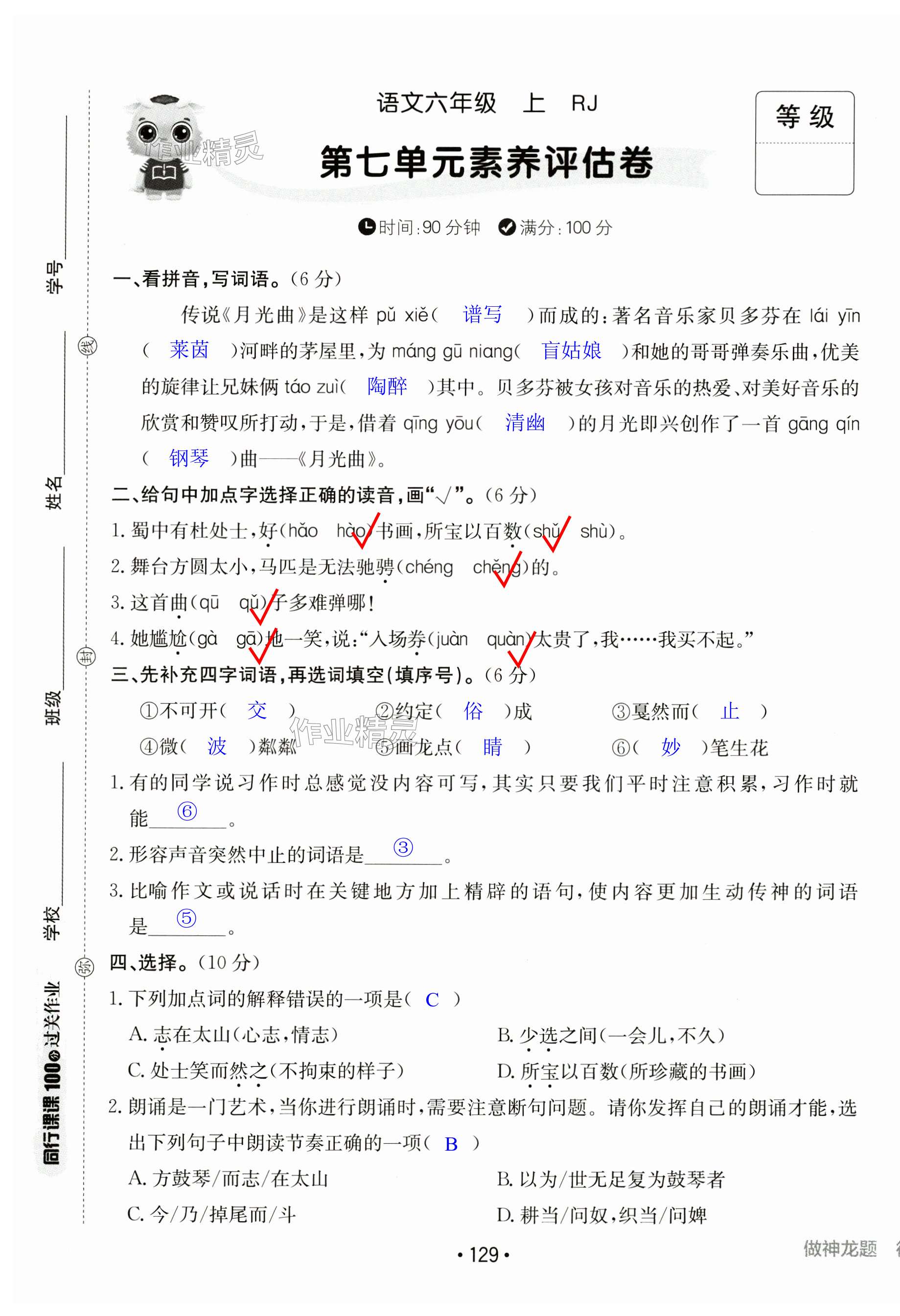 注:目前有些书本章节名称可能整理的还不是很完善,但都是按照顺序排列的,请同学们按照顺序仔细查找。练习册 2024年同行课课100分过关作业六年级语文上册人教版 答案主要是用来给同学们做完题方便对答案用的,请勿直接抄袭。