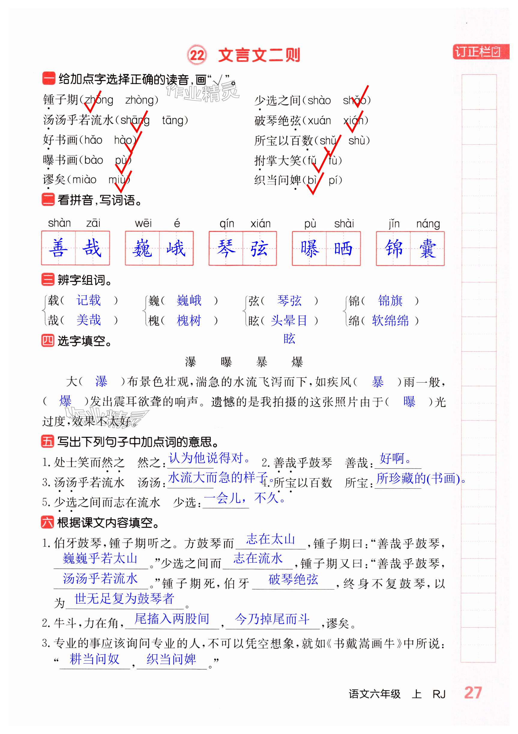 注:目前有些书本章节名称可能整理的还不是很完善,但都是按照顺序排列的,请同学们按照顺序仔细查找。练习册 2024年同行课课100分过关作业六年级语文上册人教版 答案主要是用来给同学们做完题方便对答案用的,请勿直接抄袭。