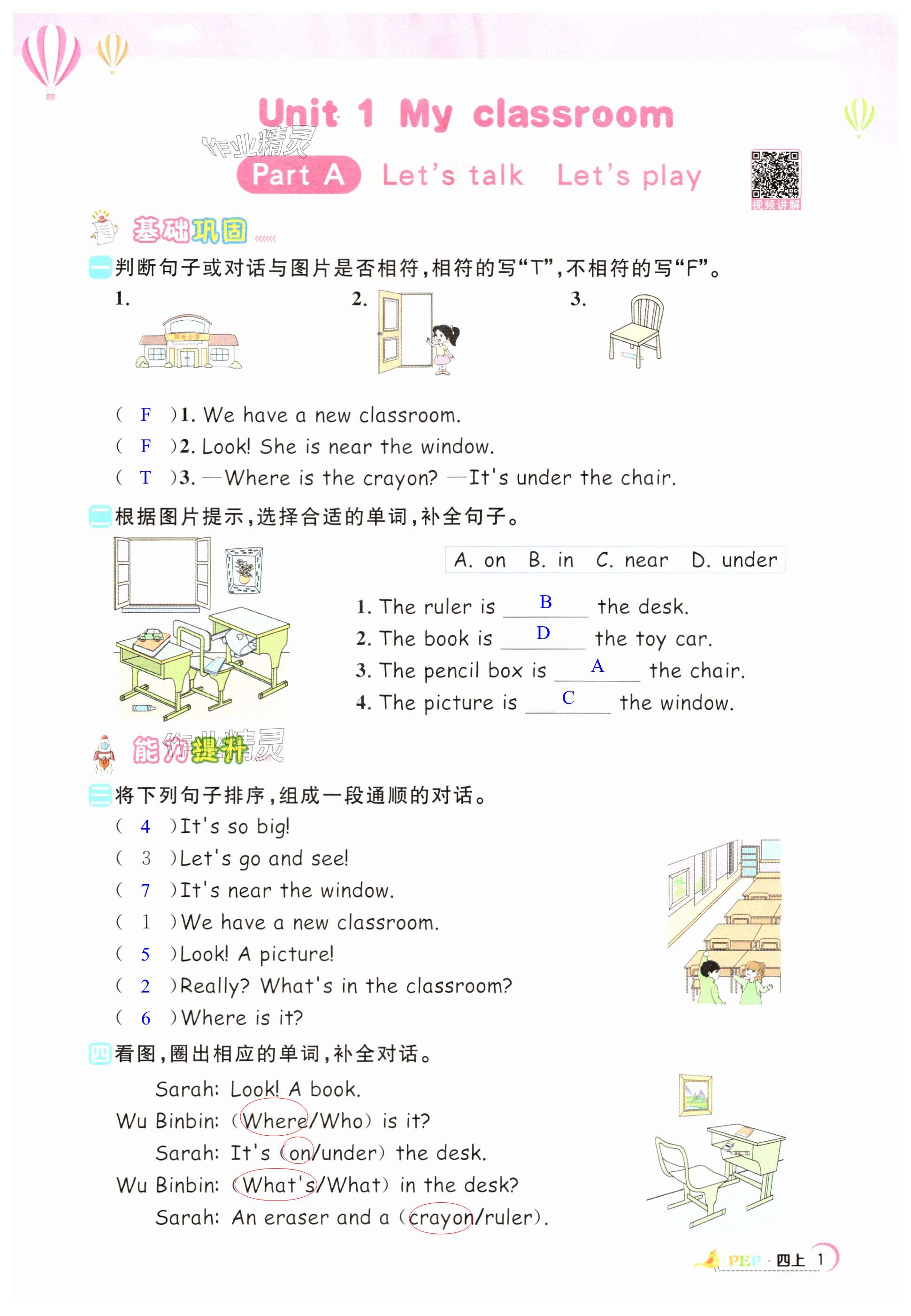精英家教网> 2024年阳光同学课时优化作业四年级英语上册人教PEP版 > 参考答案第1页 参考答案