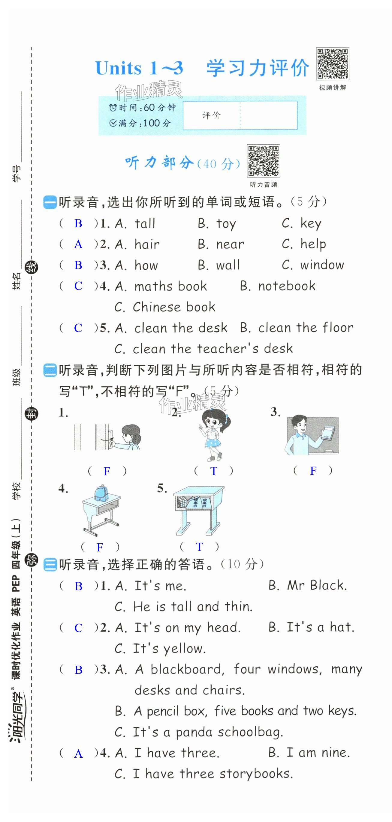 注:目前有些书本章节名称可能整理的还不是很完善,但都是按照顺序排列的,请同学们按照顺序仔细查找。练习册 2024年阳光同学课时优化作业四年级英语上册人教PEP版 答案主要是用来给同学们做完题方便对答案用的,请勿直接抄袭。