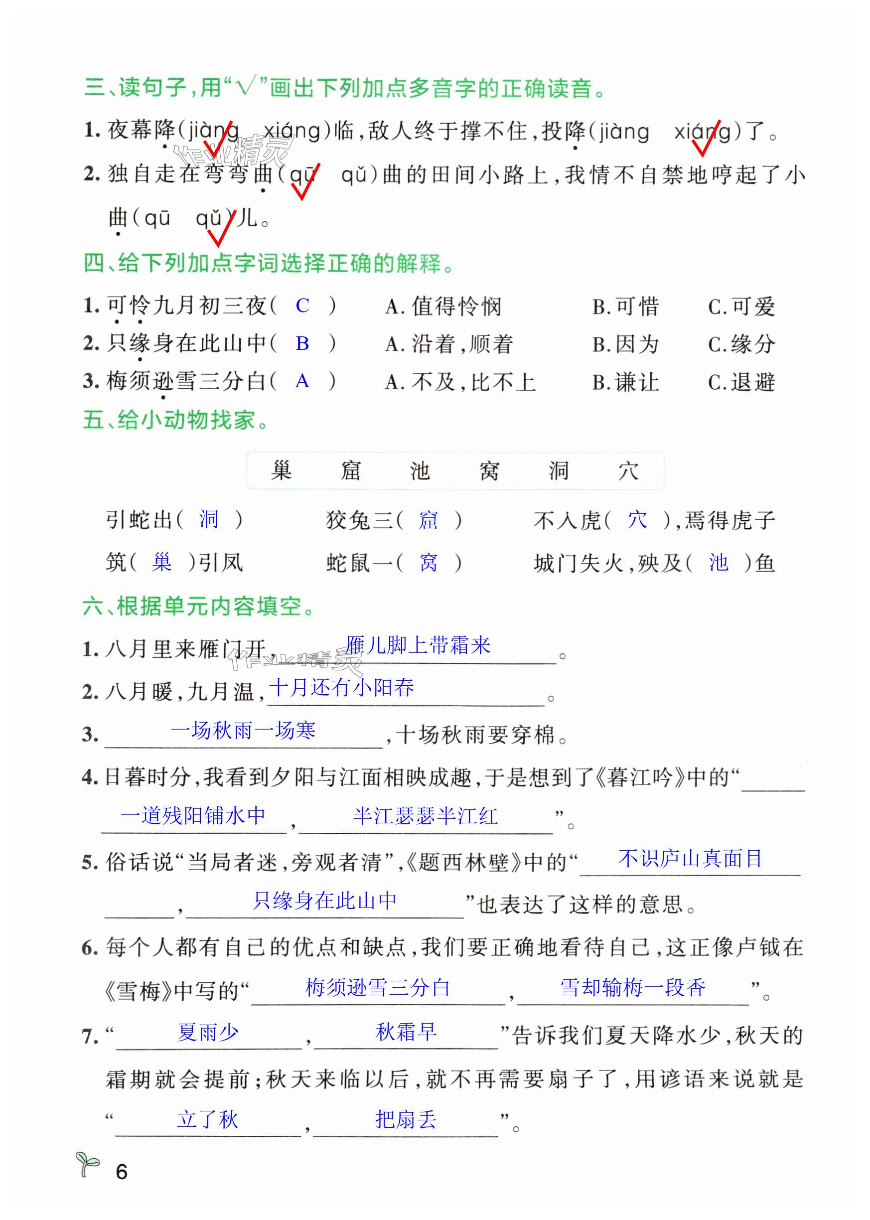 注:目前有些书本章节名称可能整理的还不是很完善,但都是按照顺序排列的,请同学们按照顺序仔细查找。练习册 2024年小学学霸作业本四年级语文上册统编版广东专版 答案主要是用来给同学们做完题方便对答案用的,请勿直接抄袭。