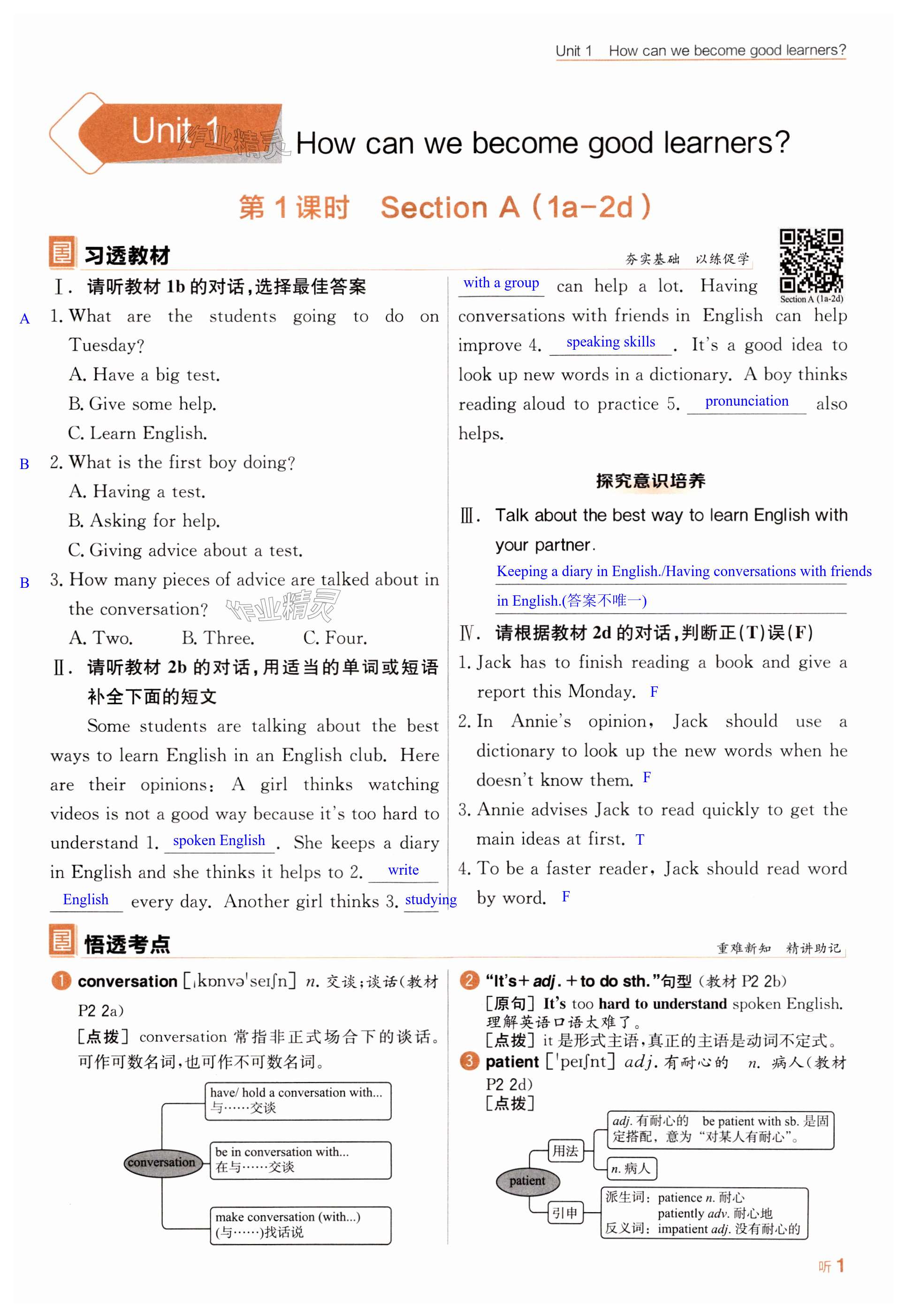 注:目前有些书本章节名称可能整理的还不是很完善,但都是按照顺序排列的,请同学们按照顺序仔细查找。练习册 2024年全品学练考九年级英语上册人教版 答案主要是用来给同学们做完题方便对答案用的,请勿直接抄袭。