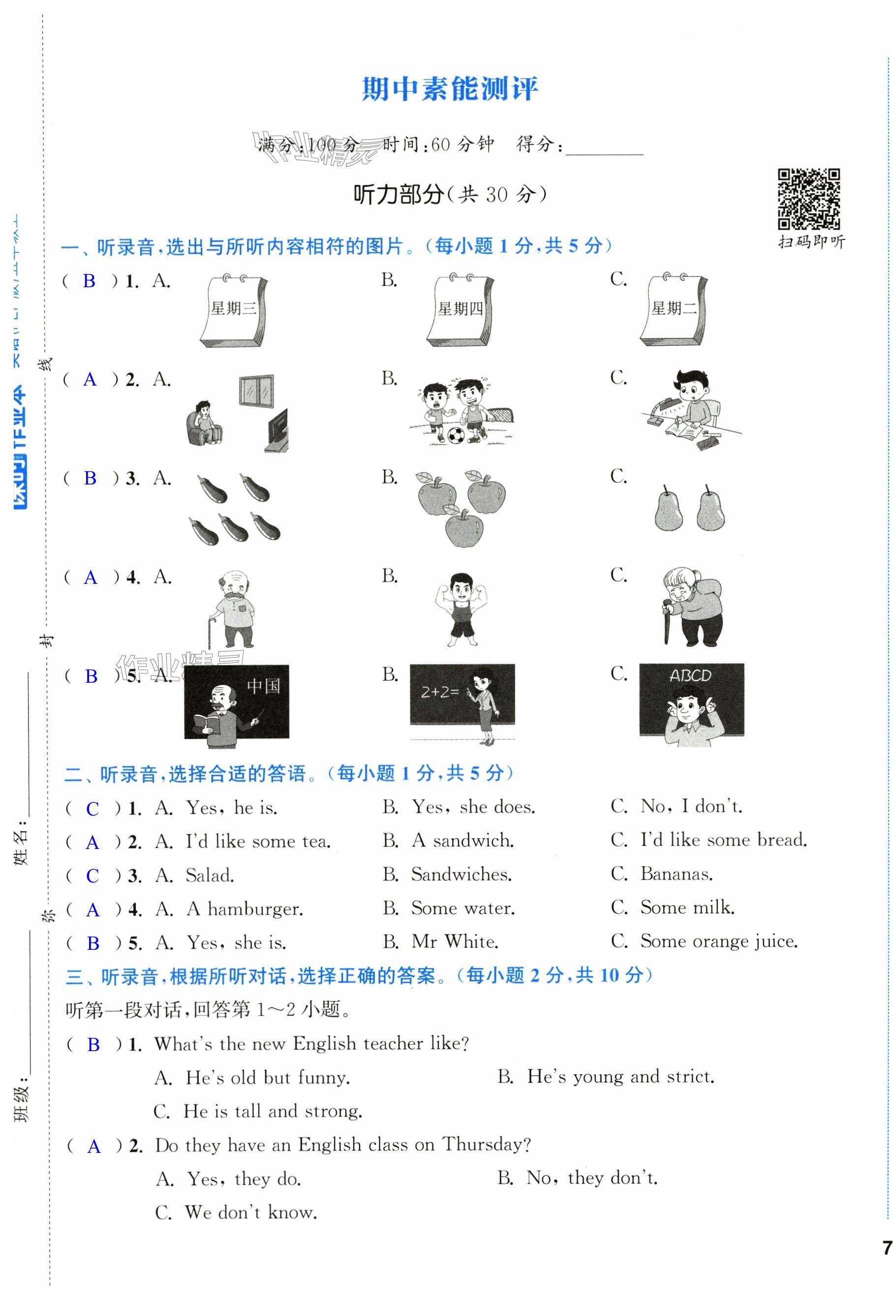 注:目前有些书本章节名称可能整理的还不是很完善,但都是按照顺序排列的,请同学们按照顺序仔细查找。练习册 2024年通城学典课时作业本五年级英语上册人教版 答案主要是用来给同学们做完题方便对答案用的,请勿直接抄袭。