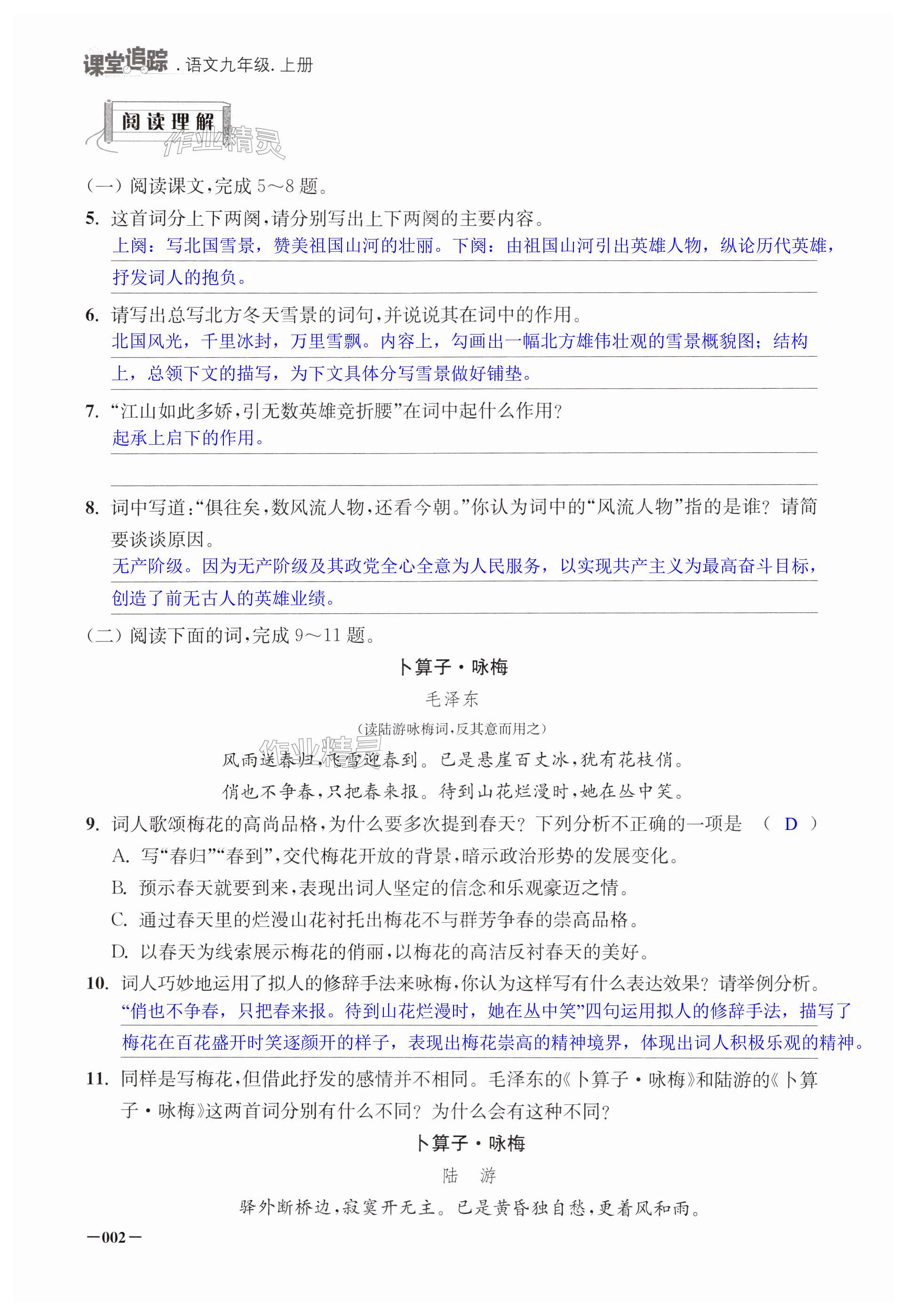 注:目前有些书本章节名称可能整理的还不是很完善,但都是按照顺序排列的,请同学们按照顺序仔细查找。练习册 2024年课堂追踪九年级语文上册人教版 答案主要是用来给同学们做完题方便对答案用的,请勿直接抄袭。