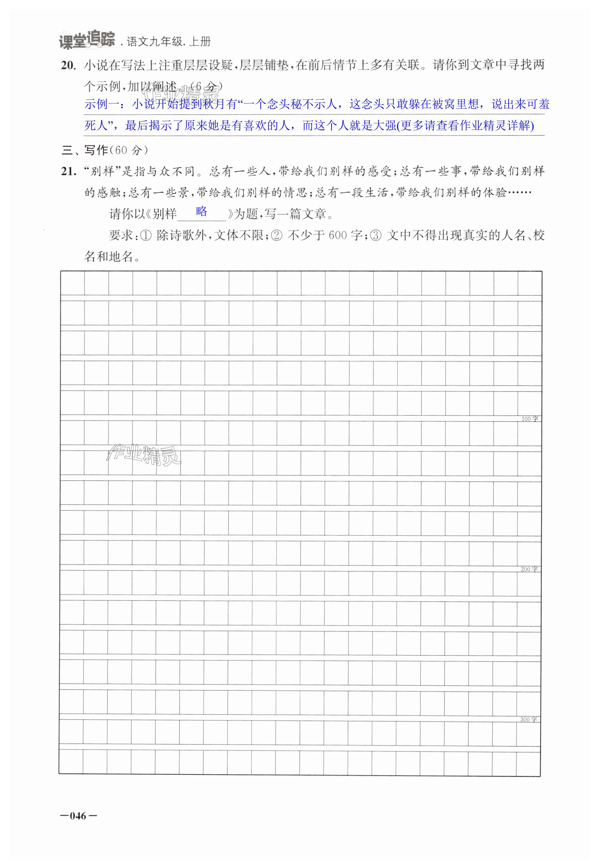 注:目前有些书本章节名称可能整理的还不是很完善,但都是按照顺序排列的,请同学们按照顺序仔细查找。练习册 2024年课堂追踪九年级语文上册人教版 答案主要是用来给同学们做完题方便对答案用的,请勿直接抄袭。