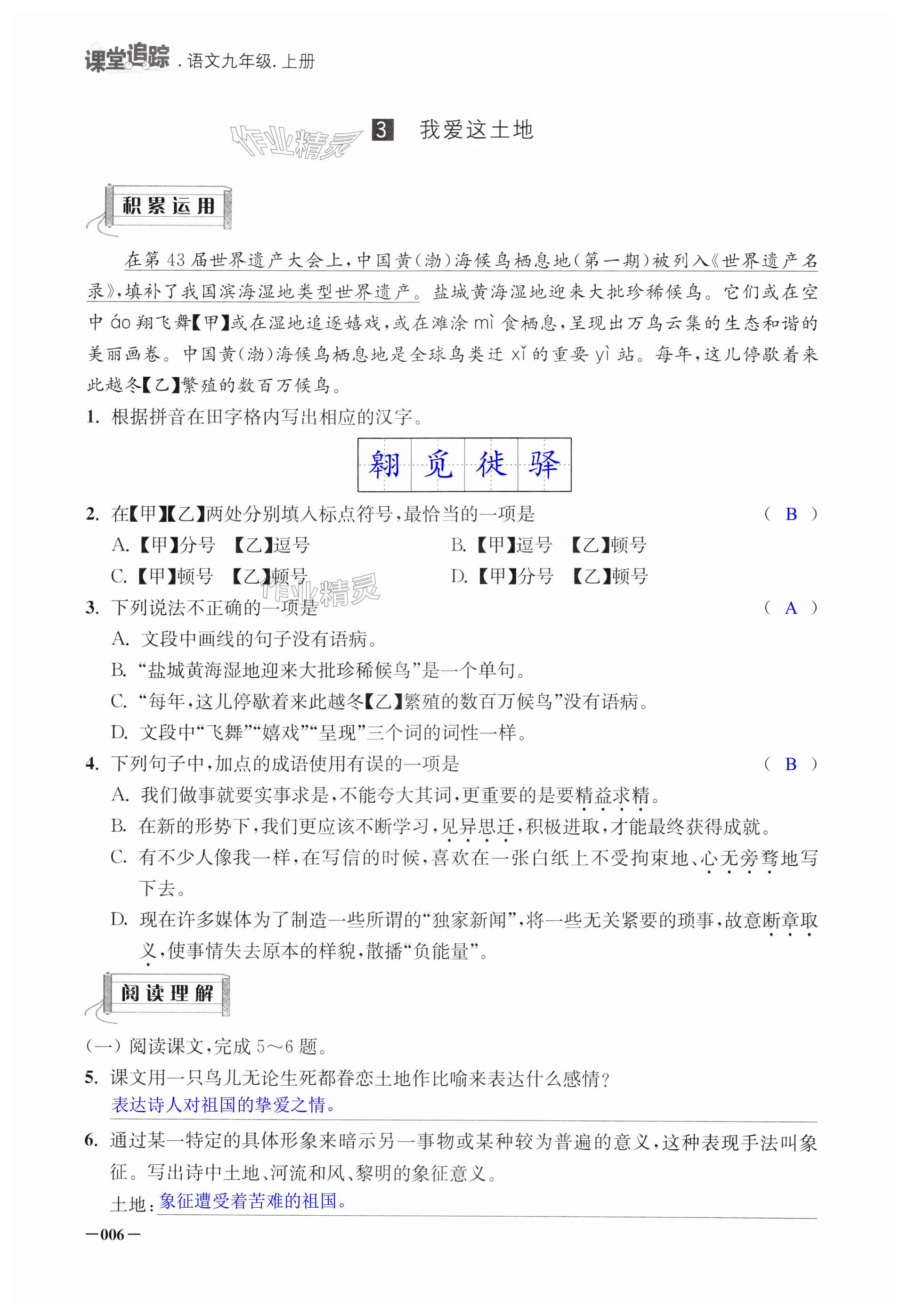 注:目前有些书本章节名称可能整理的还不是很完善,但都是按照顺序排列的,请同学们按照顺序仔细查找。练习册 2024年课堂追踪九年级语文上册人教版 答案主要是用来给同学们做完题方便对答案用的,请勿直接抄袭。