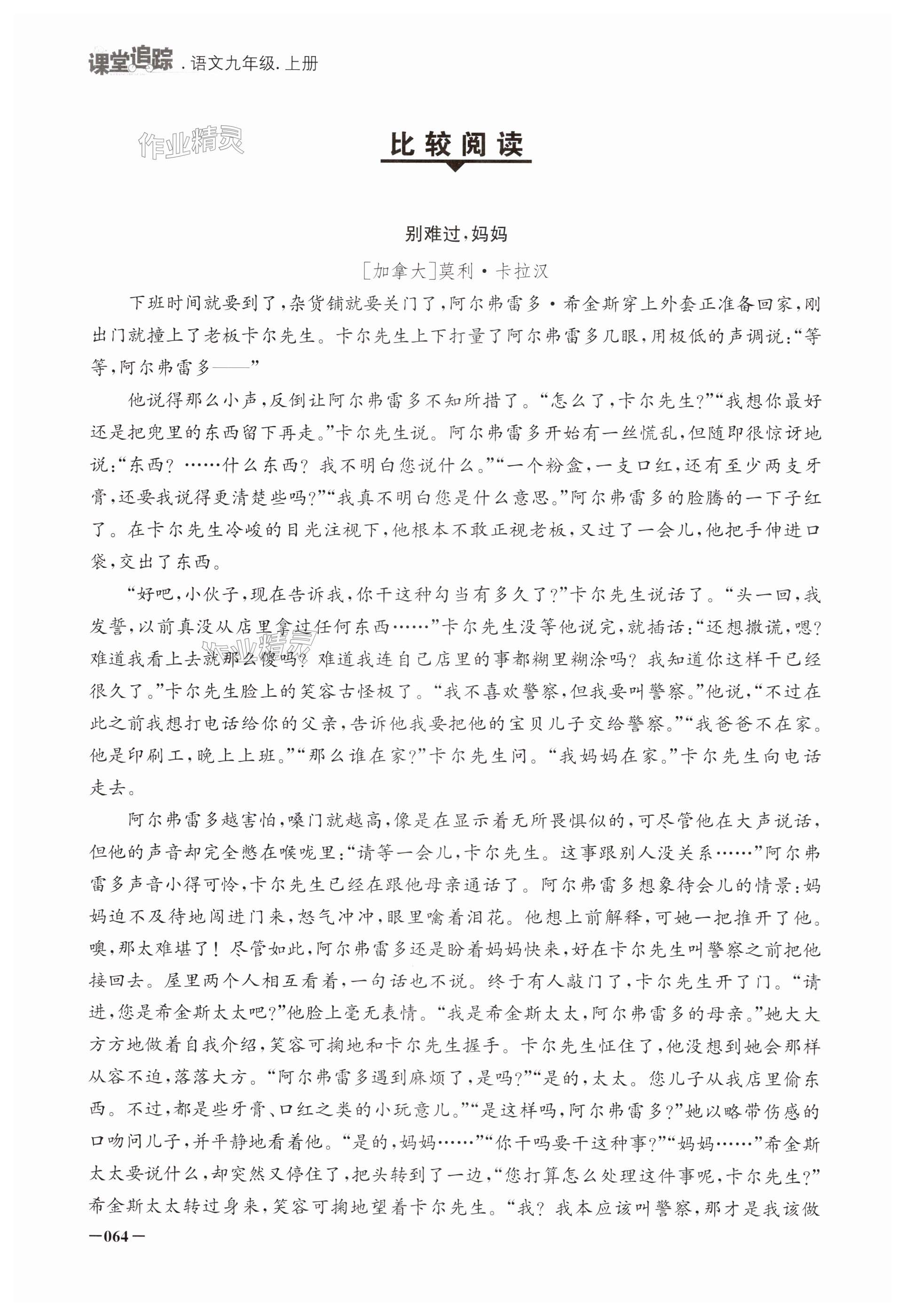 注:目前有些书本章节名称可能整理的还不是很完善,但都是按照顺序排列的,请同学们按照顺序仔细查找。练习册 2024年课堂追踪九年级语文上册人教版 答案主要是用来给同学们做完题方便对答案用的,请勿直接抄袭。