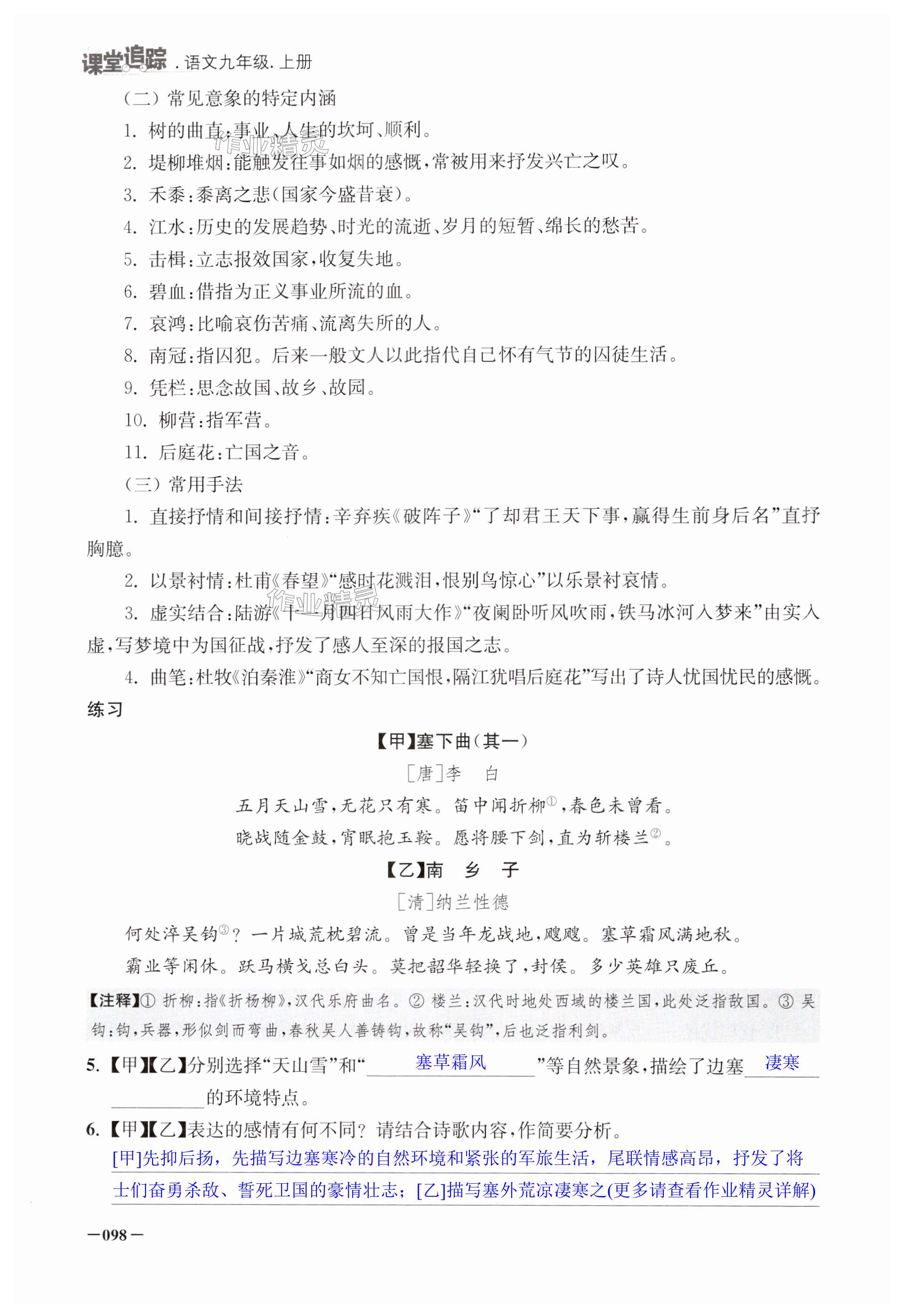 注:目前有些书本章节名称可能整理的还不是很完善,但都是按照顺序排列的,请同学们按照顺序仔细查找。练习册 2024年课堂追踪九年级语文上册人教版 答案主要是用来给同学们做完题方便对答案用的,请勿直接抄袭。