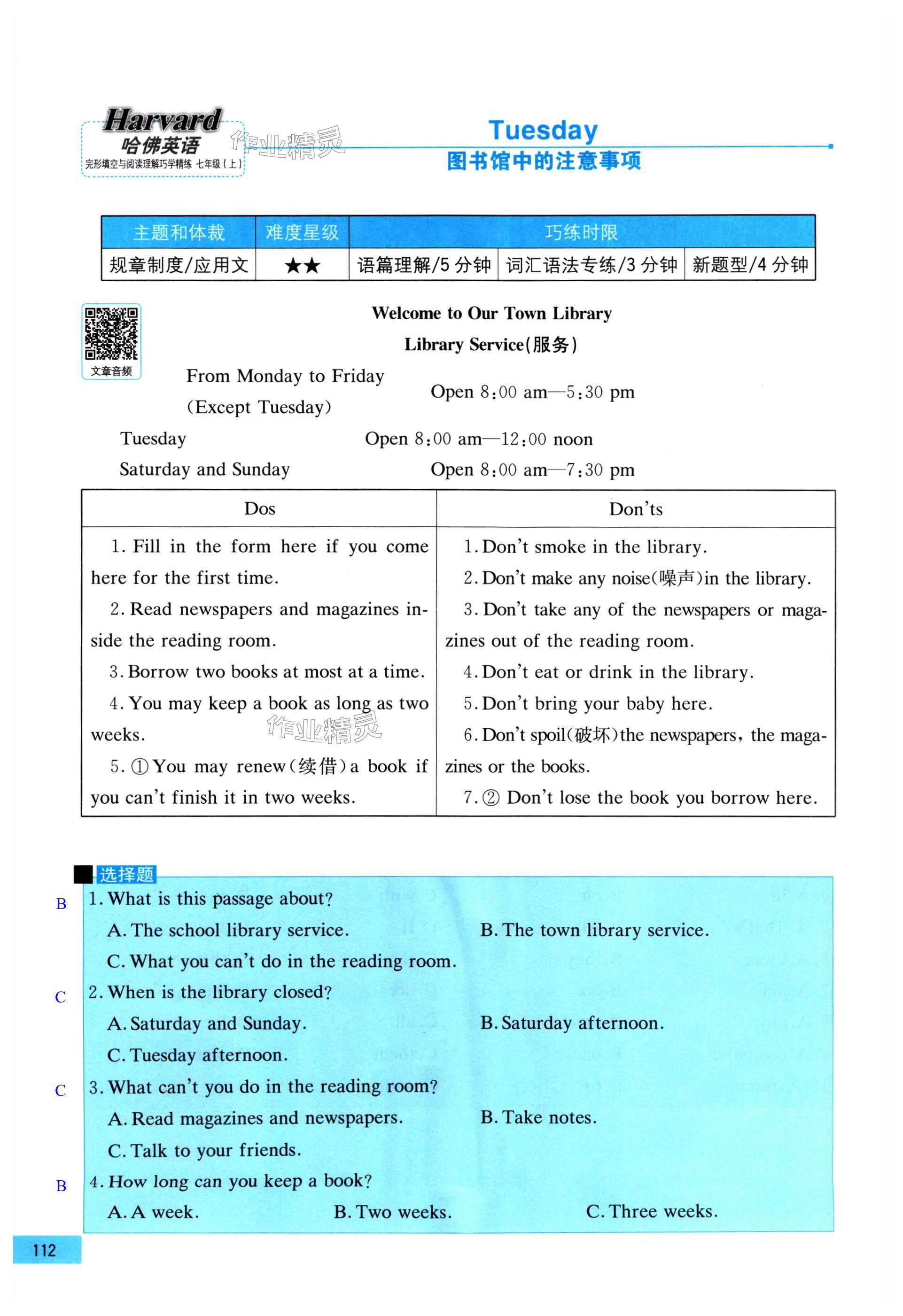 注:目前有些书本章节名称可能整理的还不是很完善,但都是按照顺序排列的,请同学们按照顺序仔细查找。练习册 2024年哈佛英语完形填空与阅读理解巧学精练七年级上册 答案主要是用来给同学们做完题方便对答案用的,请勿直接抄袭。