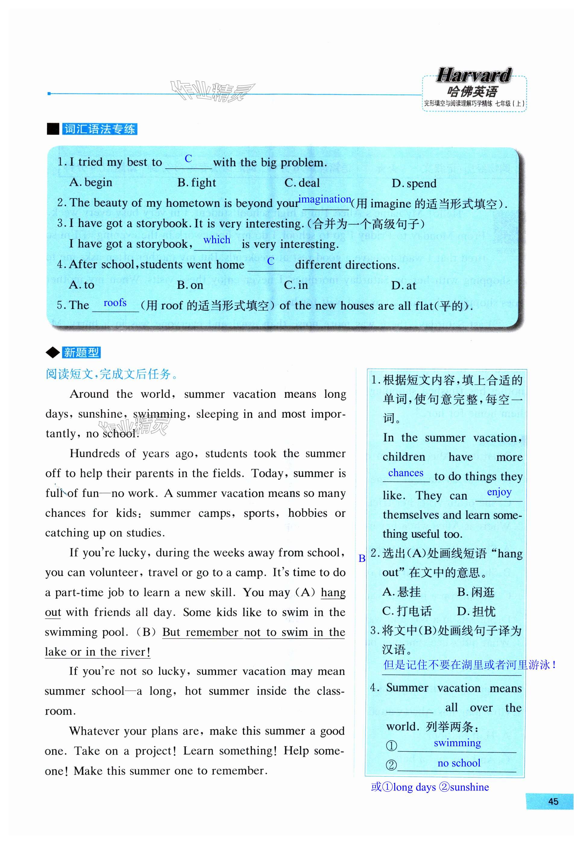 注:目前有些书本章节名称可能整理的还不是很完善,但都是按照顺序排列的,请同学们按照顺序仔细查找。练习册 2024年哈佛英语完形填空与阅读理解巧学精练七年级上册 答案主要是用来给同学们做完题方便对答案用的,请勿直接抄袭。