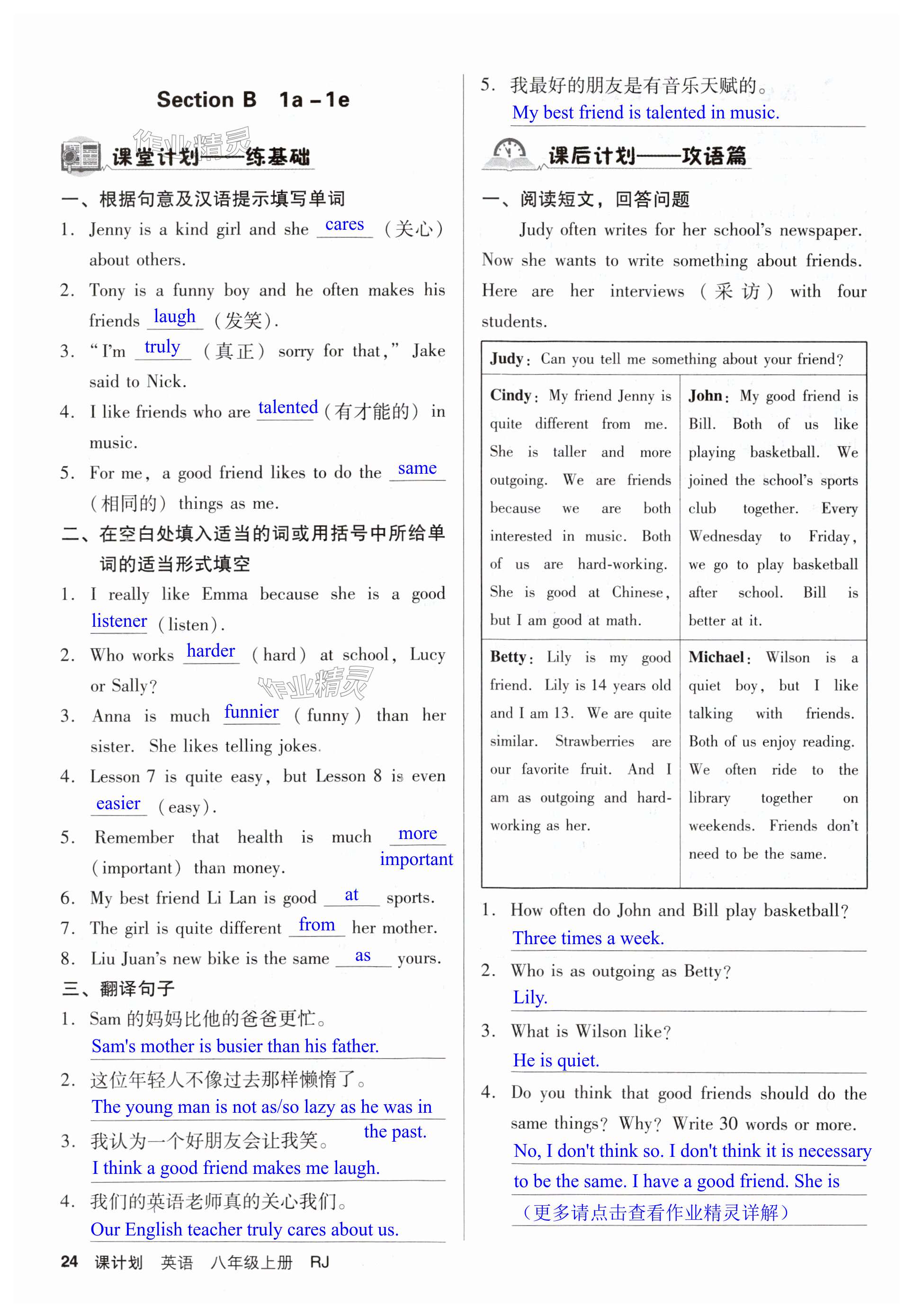 注:目前有些书本章节名称可能整理的还不是很完善,但都是按照顺序排列的,请同学们按照顺序仔细查找。练习册 2024年全优点练课计划八年级英语上册人教版 答案主要是用来给同学们做完题方便对答案用的,请勿直接抄袭。