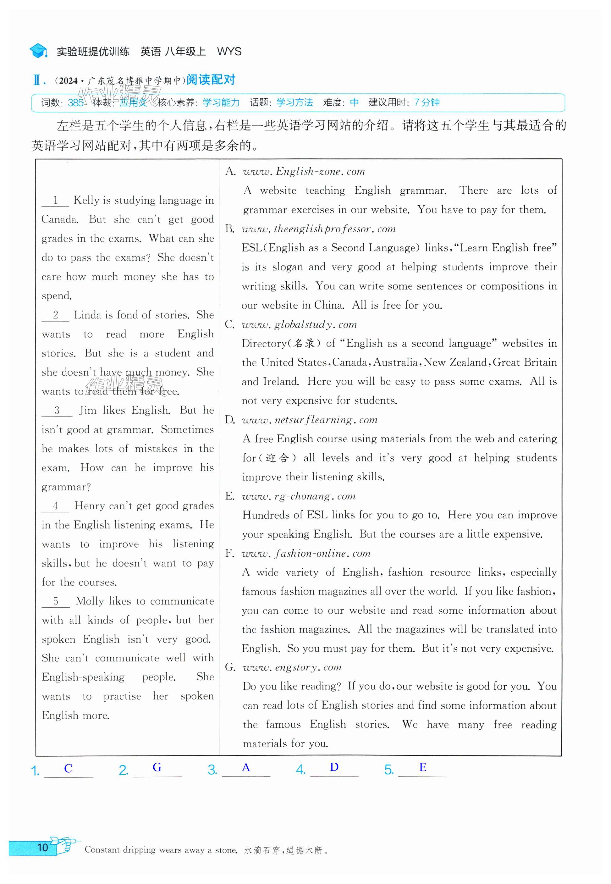 注:目前有些书本章节名称可能整理的还不是很完善,但都是按照顺序排列的,请同学们按照顺序仔细查找。练习册 2024年实验班提优训练八年级英语上册外研版 答案主要是用来给同学们做完题方便对答案用的,请勿直接抄袭。