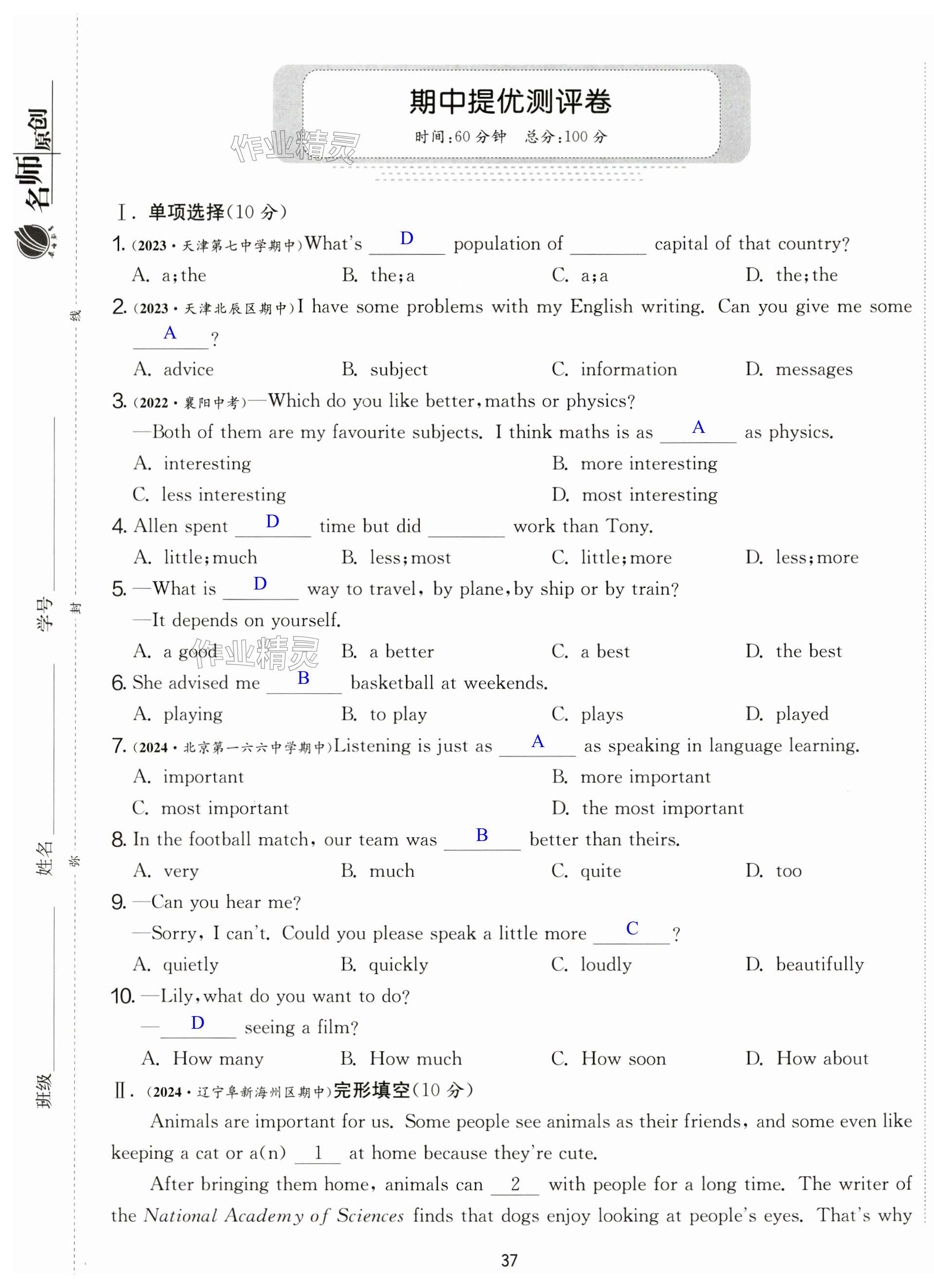 注:目前有些书本章节名称可能整理的还不是很完善,但都是按照顺序排列的,请同学们按照顺序仔细查找。练习册 2024年实验班提优训练八年级英语上册外研版 答案主要是用来给同学们做完题方便对答案用的,请勿直接抄袭。