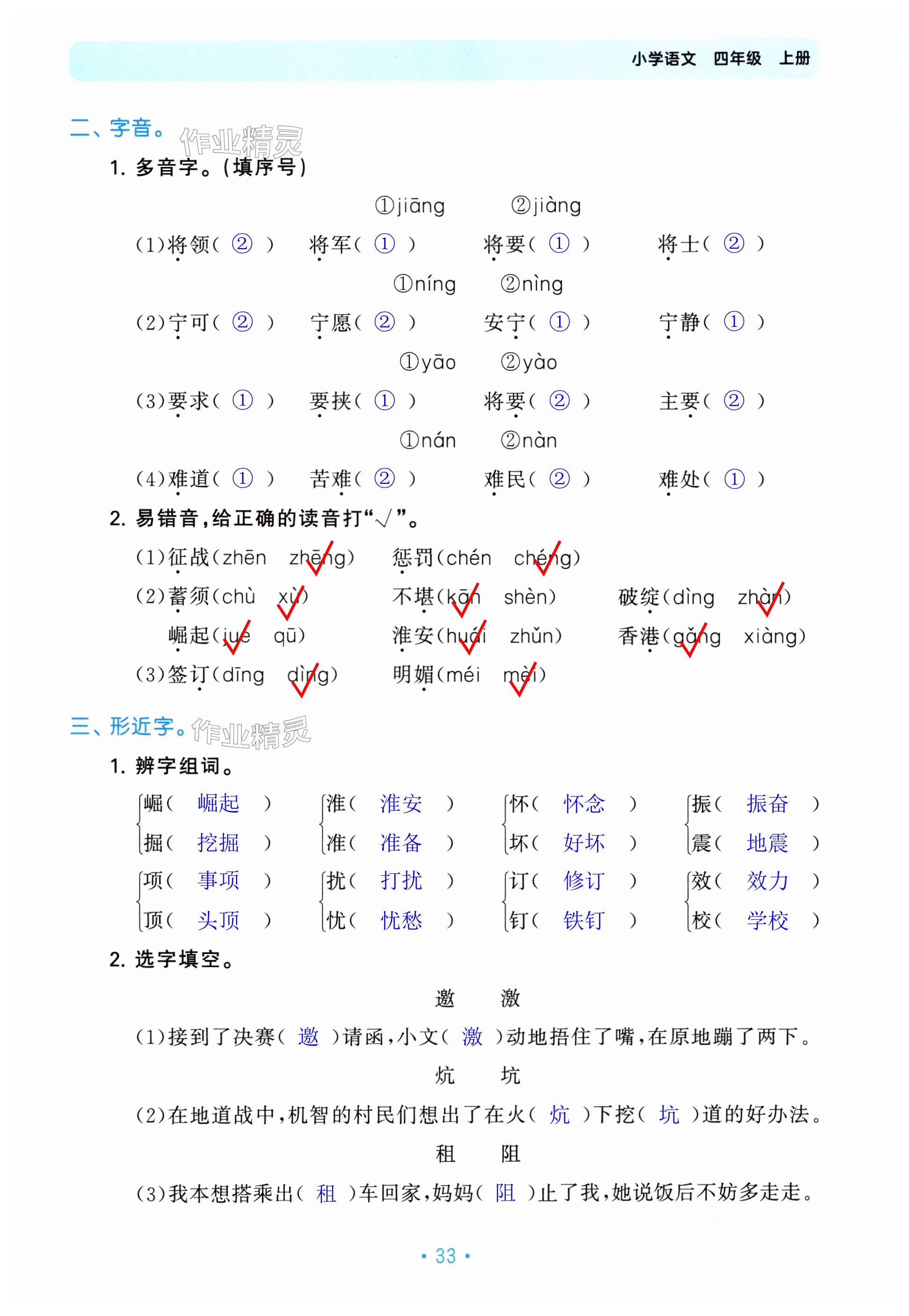 注:目前有些书本章节名称可能整理的还不是很完善,但都是按照顺序排列的,请同学们按照顺序仔细查找。练习册 2024年53单元归类复习四年级语文上册人教版 答案主要是用来给同学们做完题方便对答案用的,请勿直接抄袭。