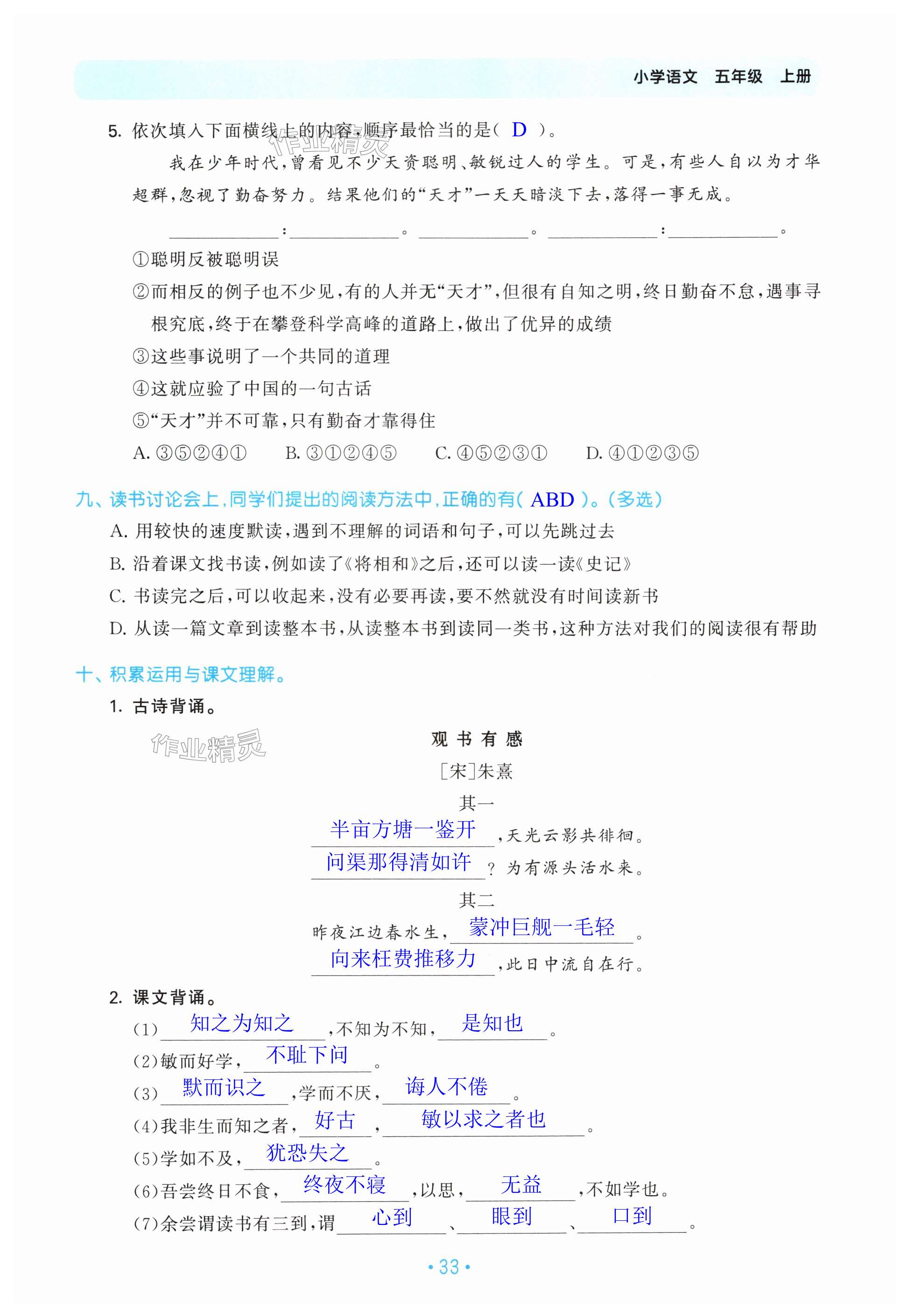 注:目前有些书本章节名称可能整理的还不是很完善,但都是按照顺序排列的,请同学们按照顺序仔细查找。练习册 2024年53单元归类复习五年级语文上册人教版 答案主要是用来给同学们做完题方便对答案用的,请勿直接抄袭。