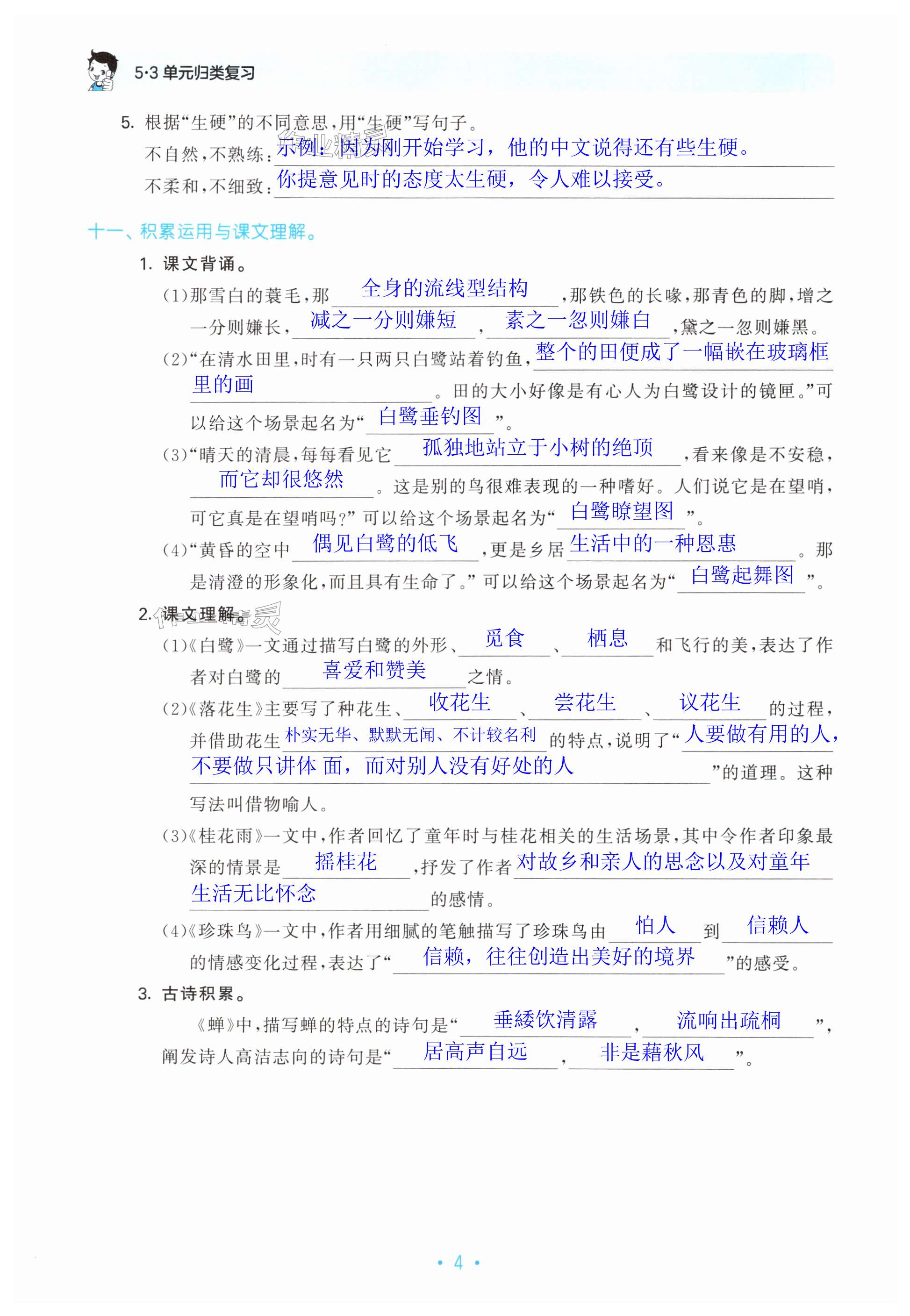 注:目前有些书本章节名称可能整理的还不是很完善,但都是按照顺序排列的,请同学们按照顺序仔细查找。练习册 2024年53单元归类复习五年级语文上册人教版 答案主要是用来给同学们做完题方便对答案用的,请勿直接抄袭。