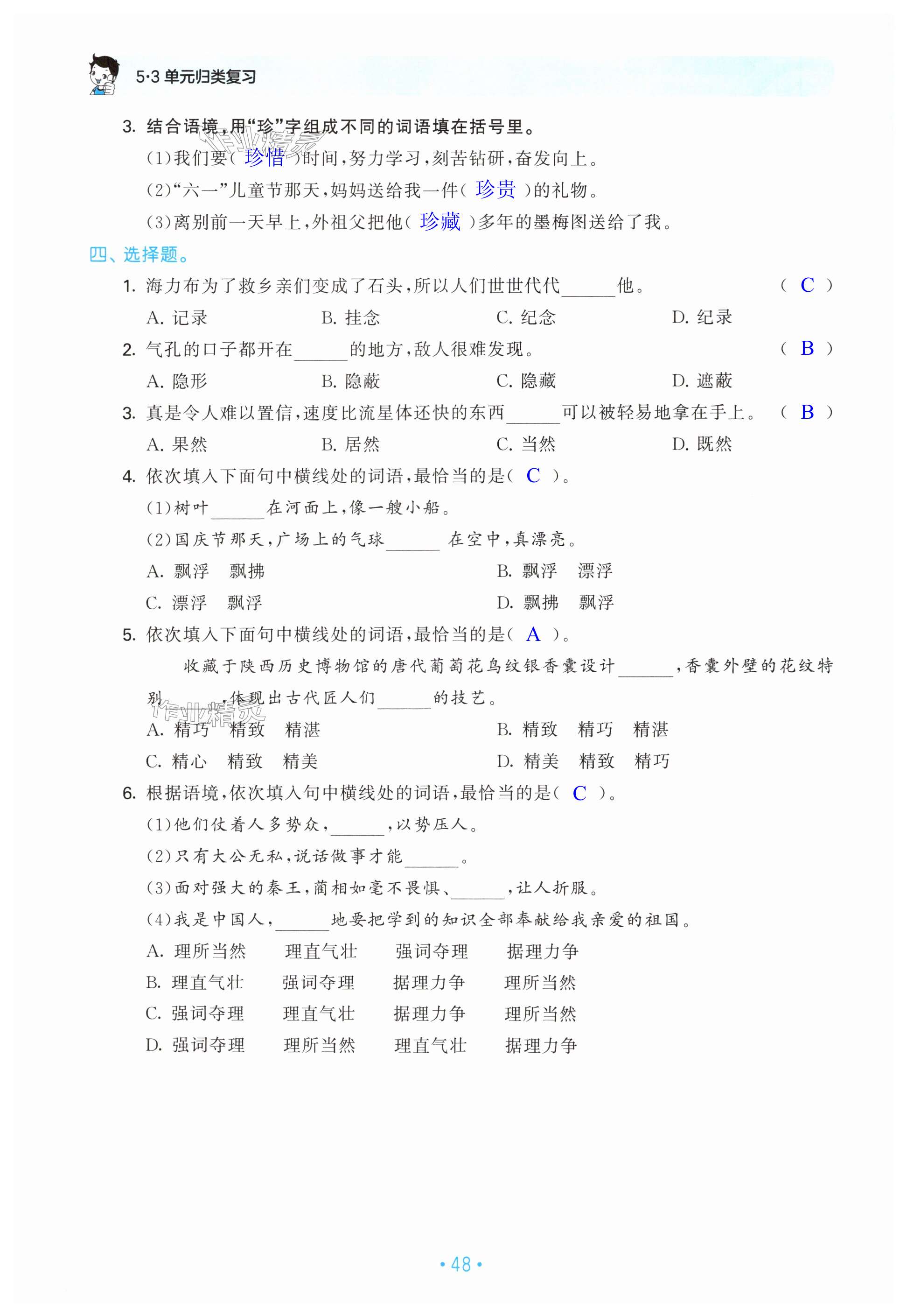 注:目前有些书本章节名称可能整理的还不是很完善,但都是按照顺序排列的,请同学们按照顺序仔细查找。练习册 2024年53单元归类复习五年级语文上册人教版 答案主要是用来给同学们做完题方便对答案用的,请勿直接抄袭。
