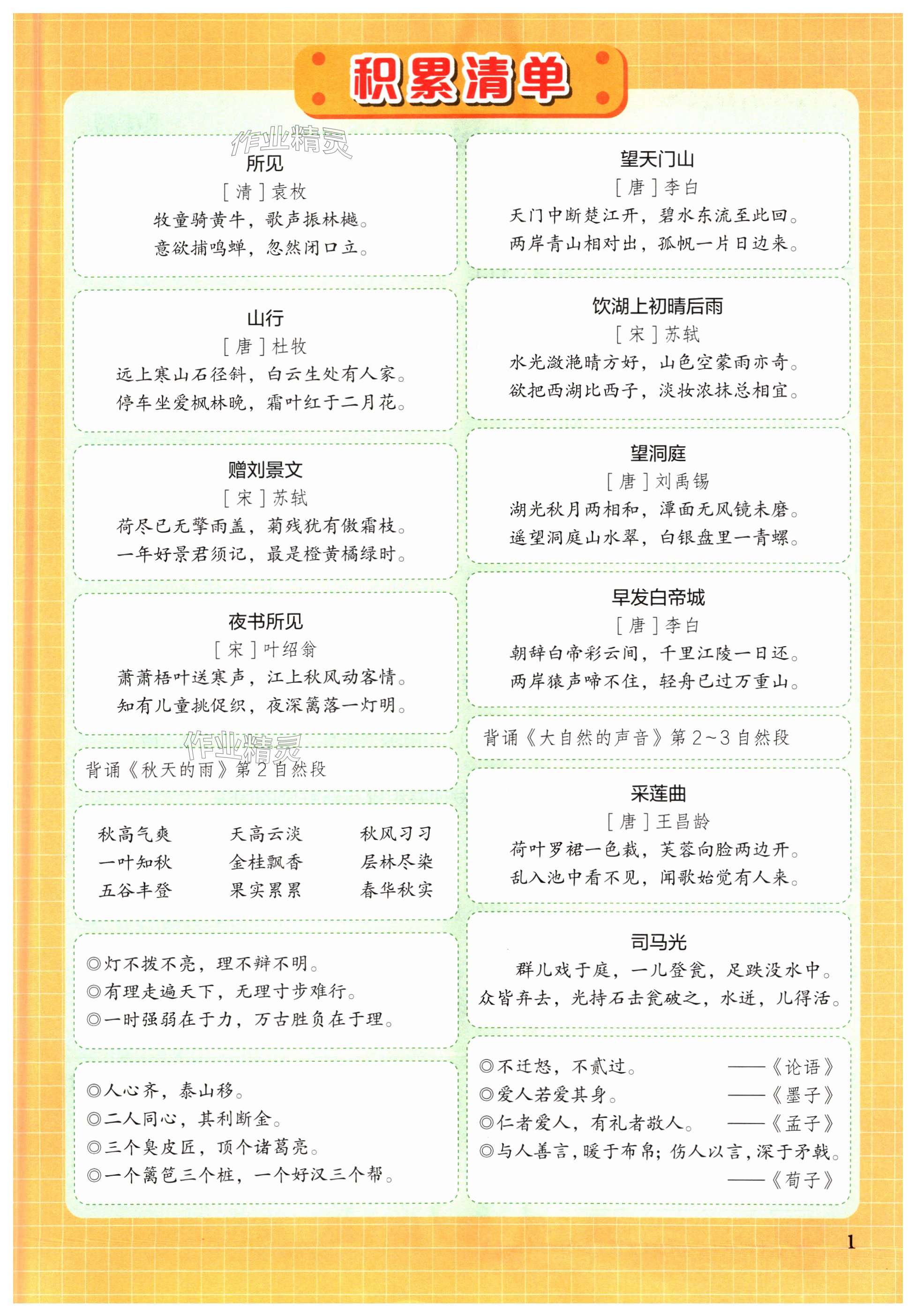 2024年黄冈小状元作业本三年级语文上册人教版 参考答案第1页