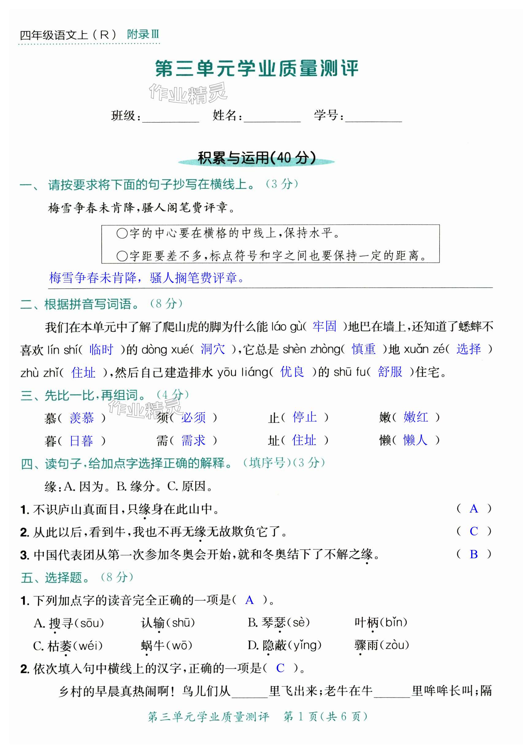 注:目前有些书本章节名称可能整理的还不是很完善,但都是按照顺序排列的,请同学们按照顺序仔细查找。练习册 2024年黄冈小状元作业本四年级语文上册人教版 答案主要是用来给同学们做完题方便对答案用的,请勿直接抄袭。