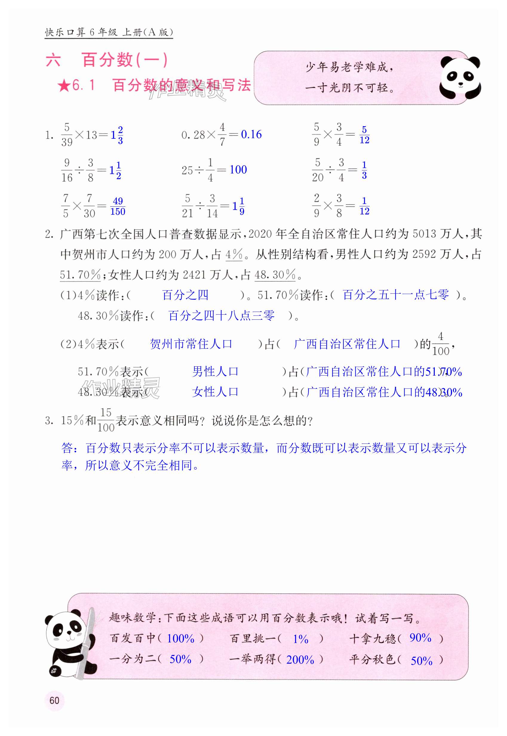 注:目前有些书本章节名称可能整理的还不是很完善,但都是按照顺序排列的,请同学们按照顺序仔细查找。练习册 2024年快乐口算六年级数学上册人教版 答案主要是用来给同学们做完题方便对答案用的,请勿直接抄袭。