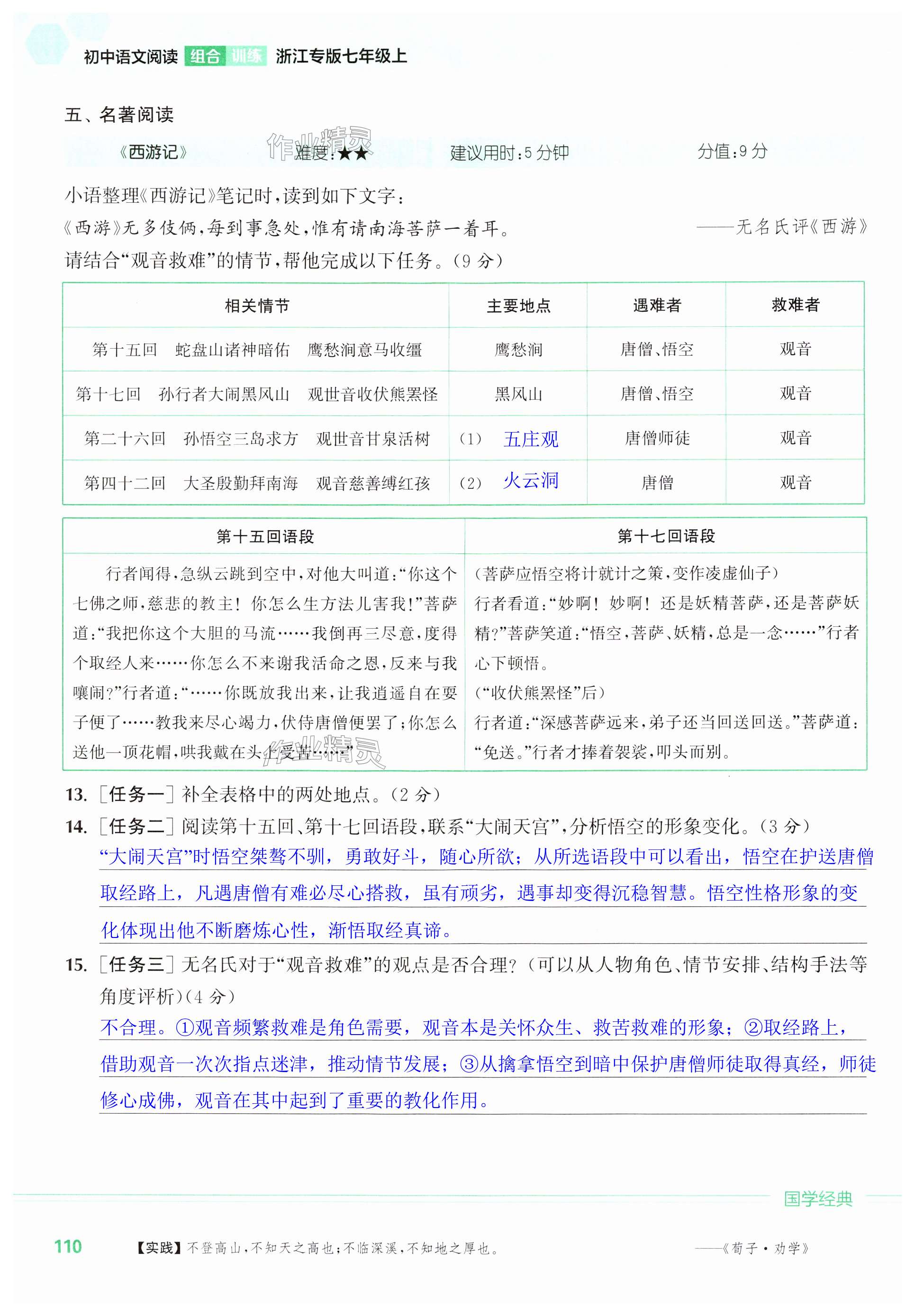 注:目前有些书本章节名称可能整理的还不是很完善,但都是按照顺序排列的,请同学们按照顺序仔细查找。练习册 2024年通城学典初中语文阅读组合训练七年级语文上册浙江专版 答案主要是用来给同学们做完题方便对答案用的,请勿直接抄袭。
