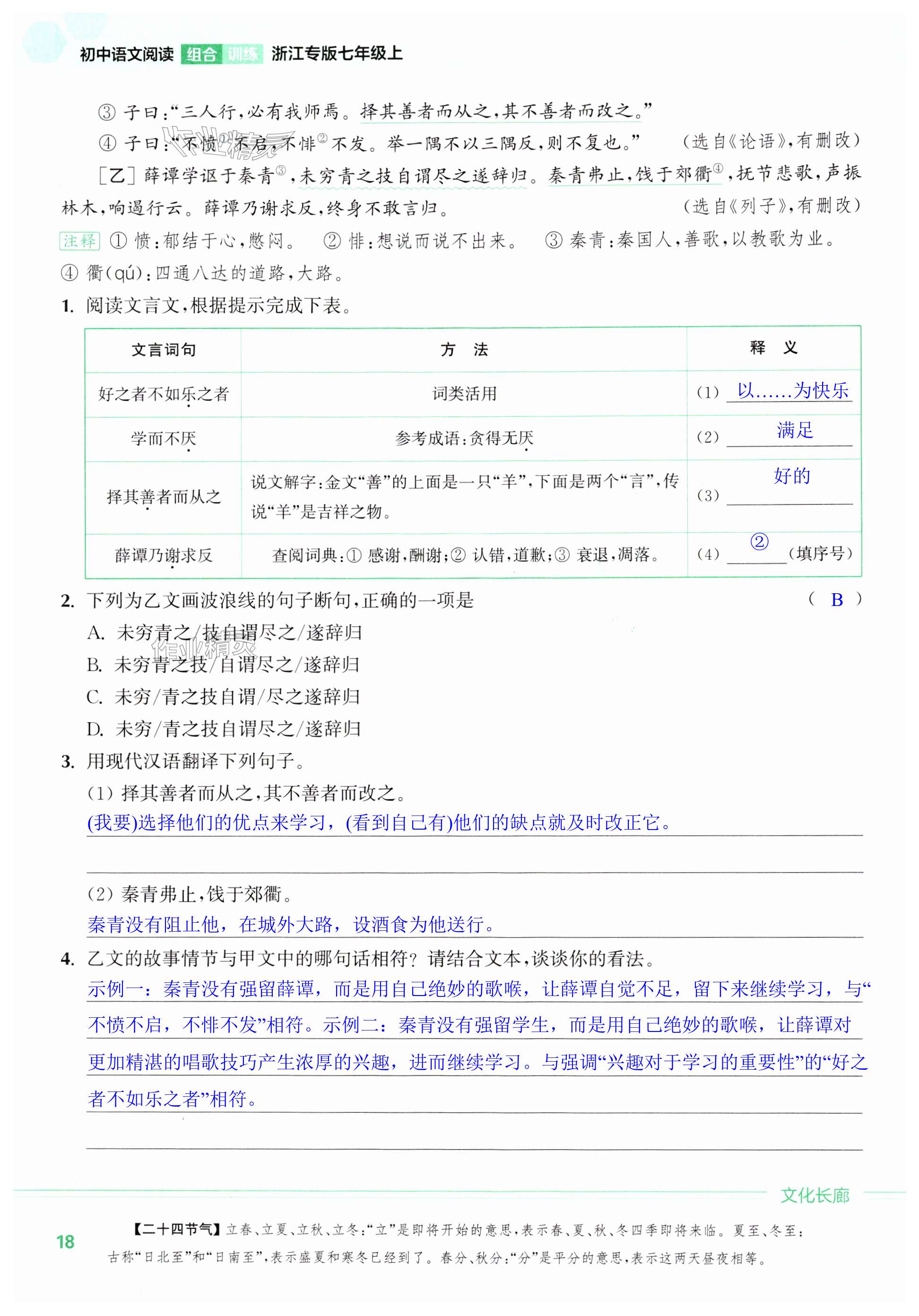 注:目前有些书本章节名称可能整理的还不是很完善,但都是按照顺序排列的,请同学们按照顺序仔细查找。练习册 2024年通城学典初中语文阅读组合训练七年级语文上册浙江专版 答案主要是用来给同学们做完题方便对答案用的,请勿直接抄袭。