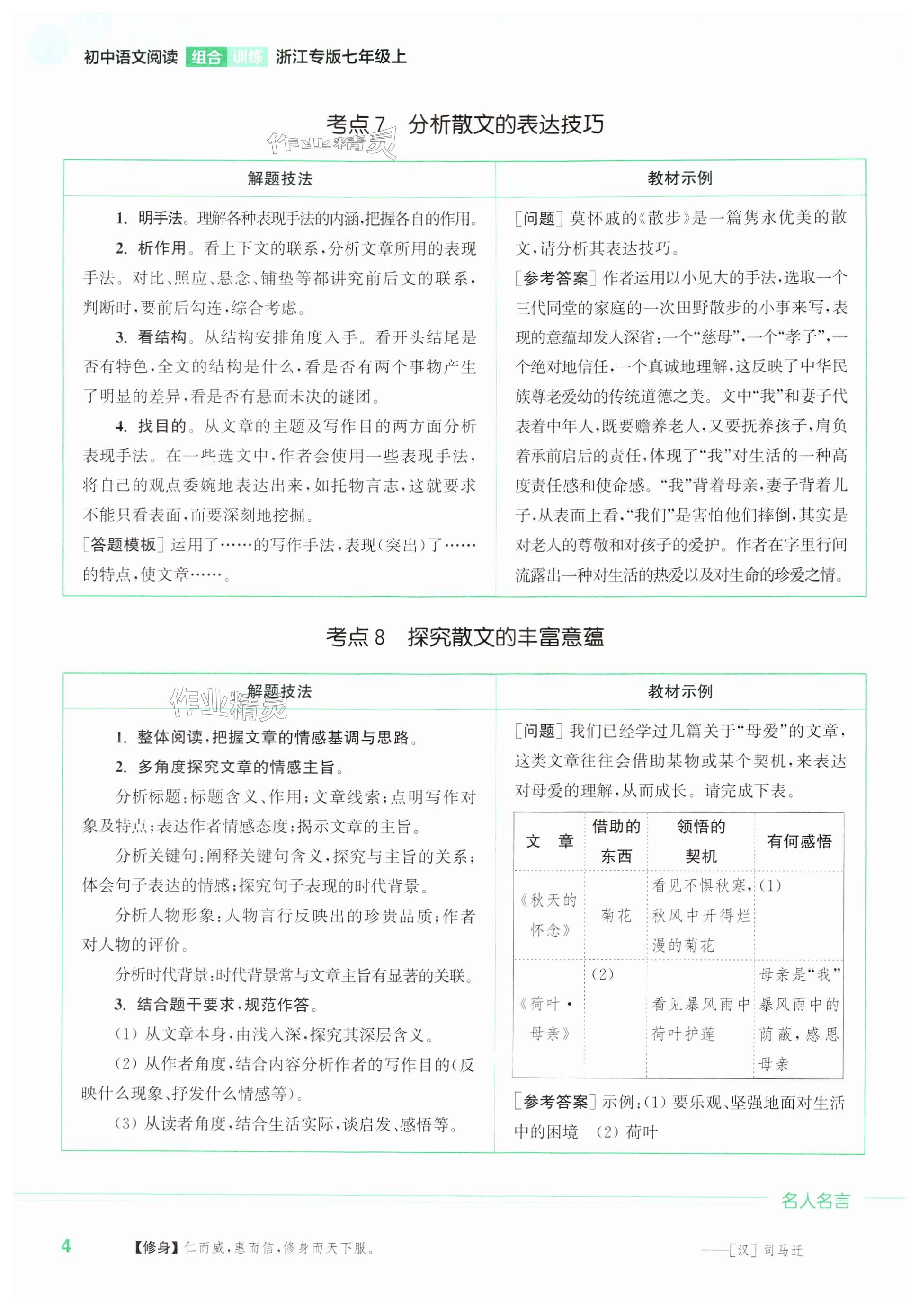 注:目前有些书本章节名称可能整理的还不是很完善,但都是按照顺序排列的,请同学们按照顺序仔细查找。练习册 2024年通城学典初中语文阅读组合训练七年级语文上册浙江专版 答案主要是用来给同学们做完题方便对答案用的,请勿直接抄袭。