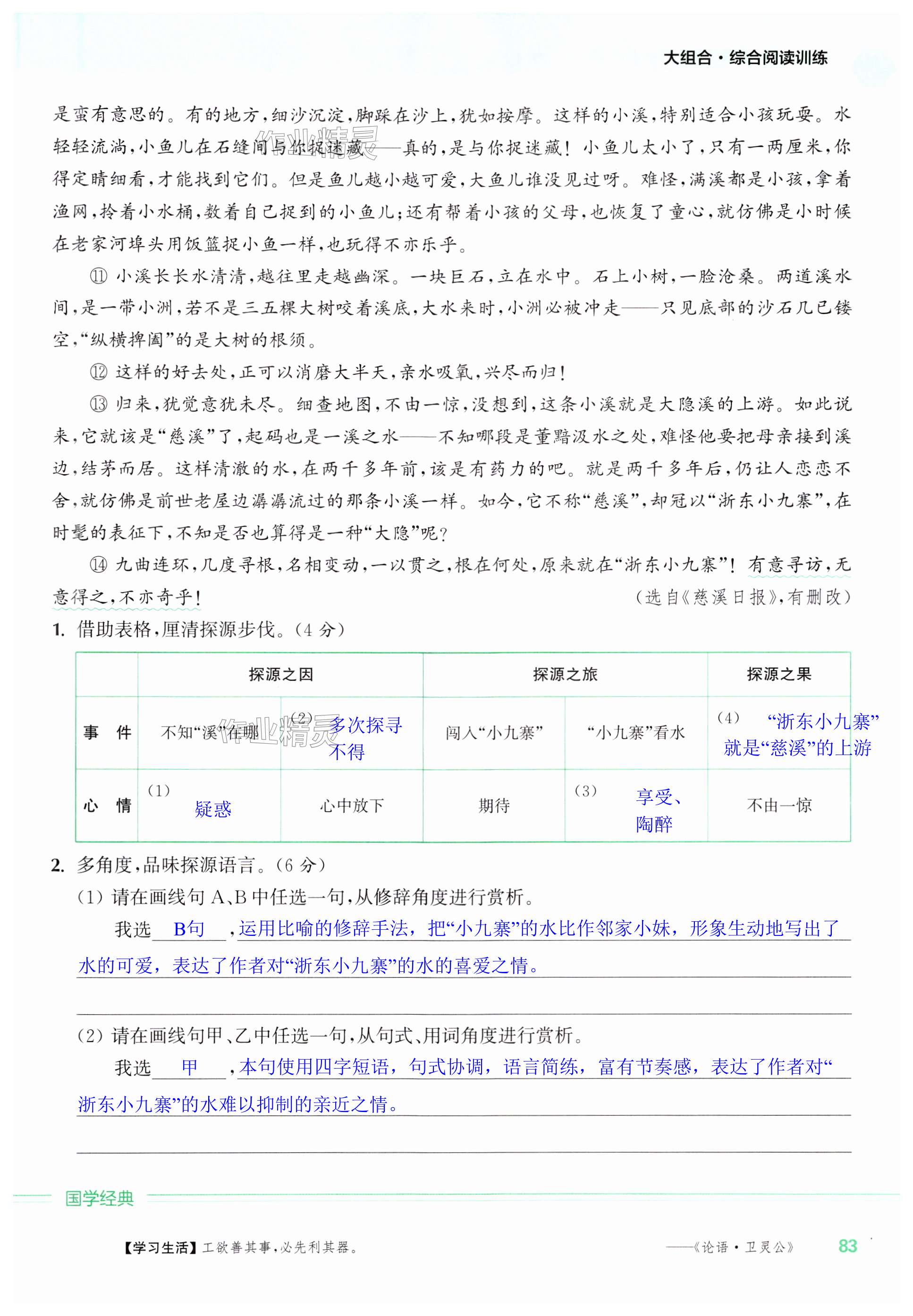注:目前有些书本章节名称可能整理的还不是很完善,但都是按照顺序排列的,请同学们按照顺序仔细查找。练习册 2024年通城学典初中语文阅读组合训练七年级语文上册浙江专版 答案主要是用来给同学们做完题方便对答案用的,请勿直接抄袭。