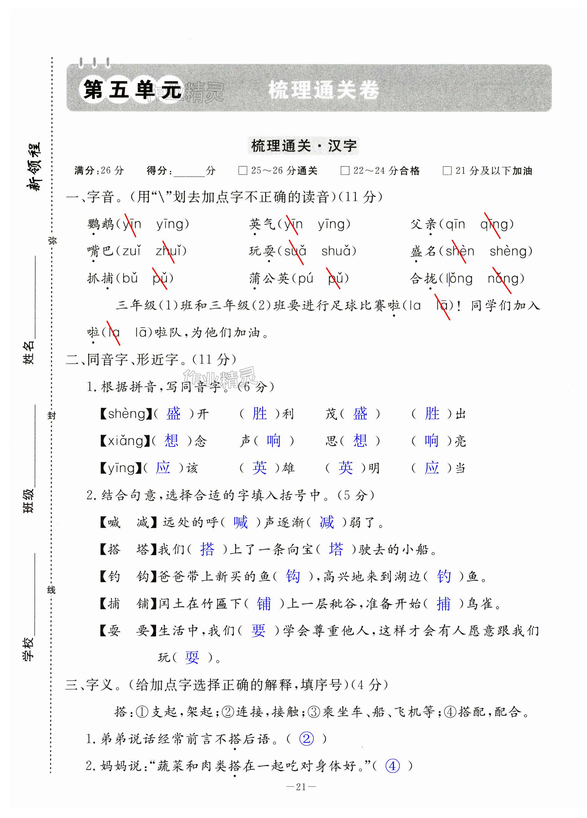 注:目前有些书本章节名称可能整理的还不是很完善,但都是按照顺序排列的,请同学们按照顺序仔细查找。练习册 2024年默写大通关三年级语文上册人教版 答案主要是用来给同学们做完题方便对答案用的,请勿直接抄袭。